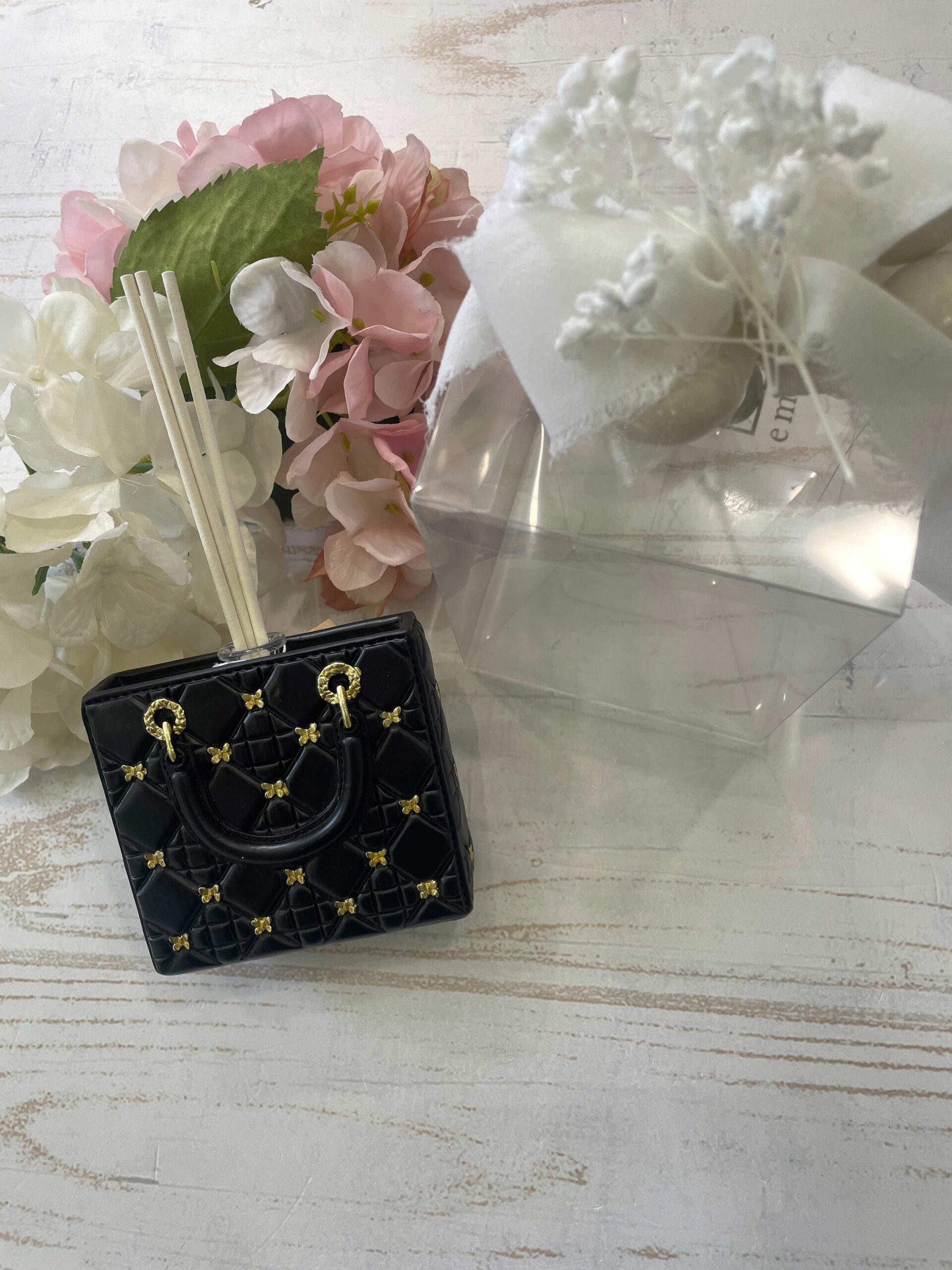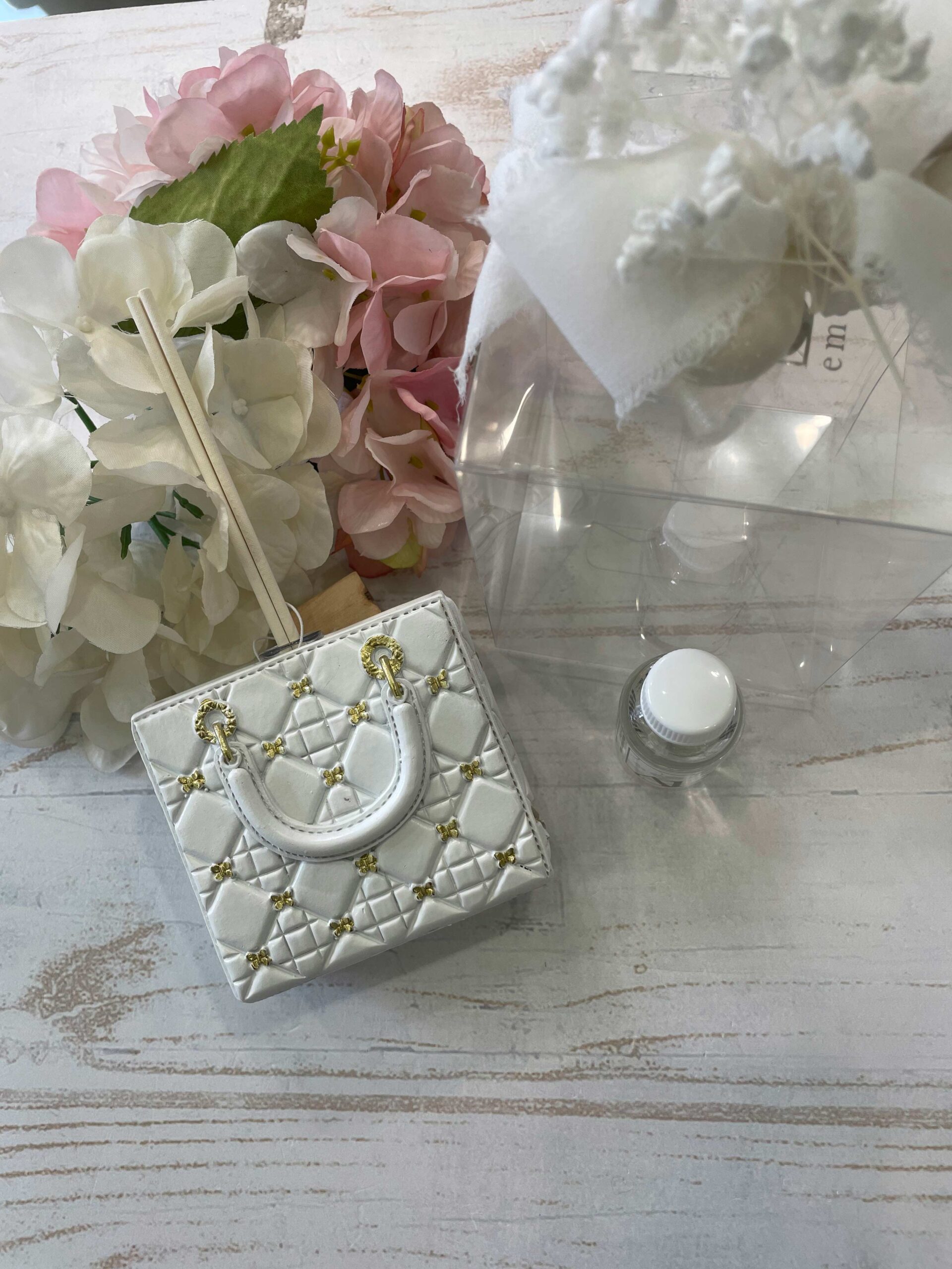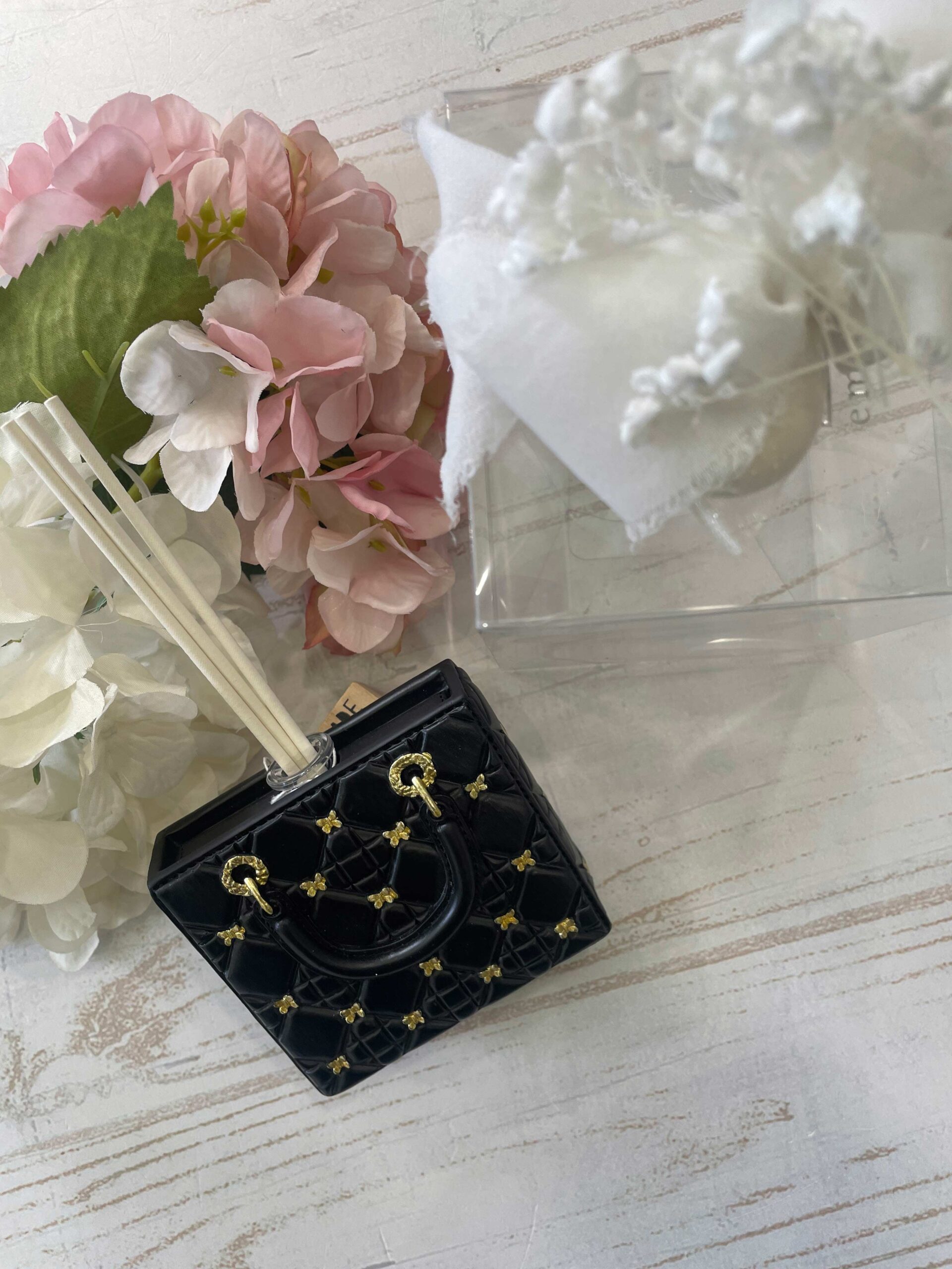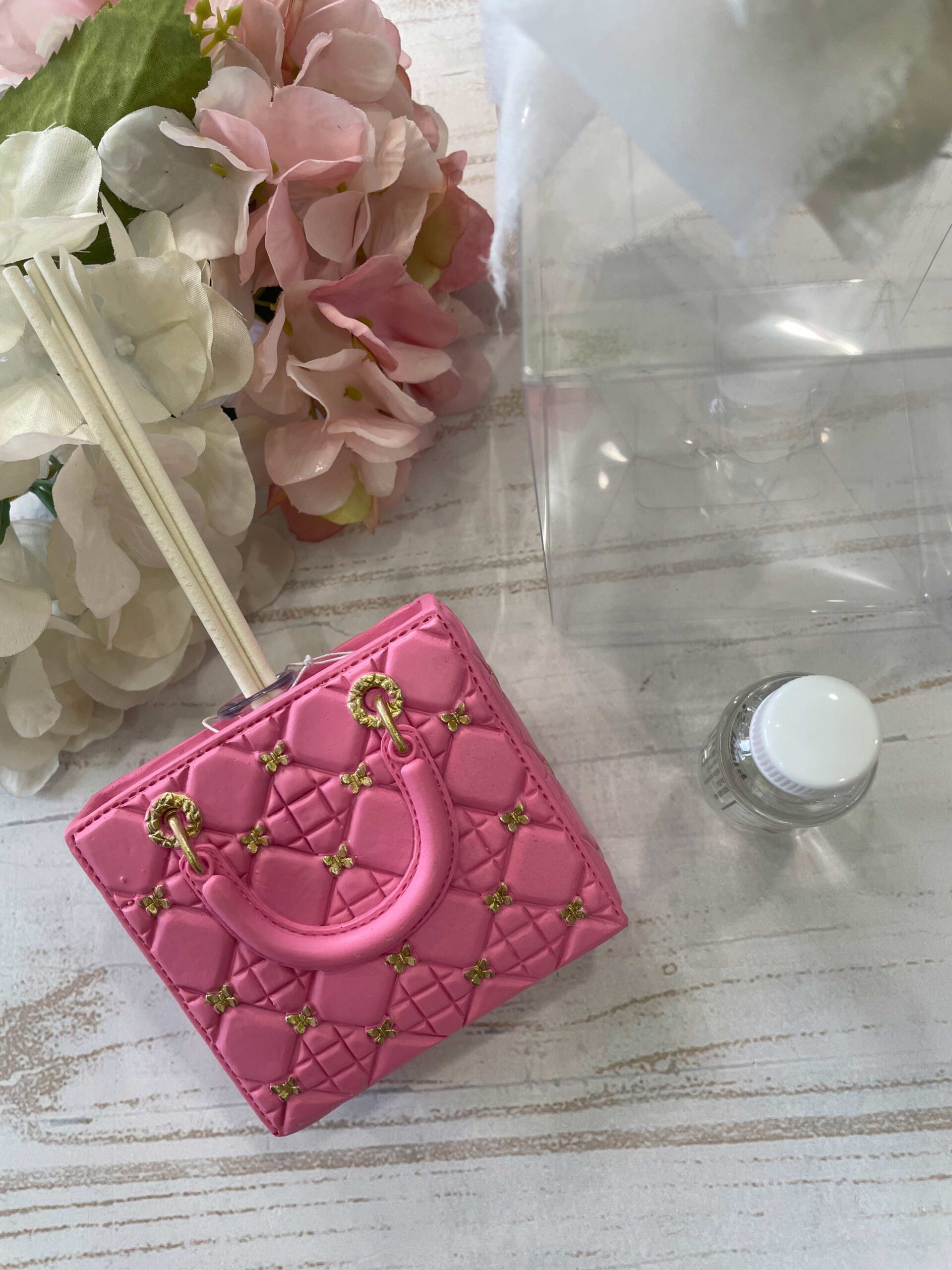 Raffinato profumatore a forma di borsetta con finiture dorate. Art. C2501.
