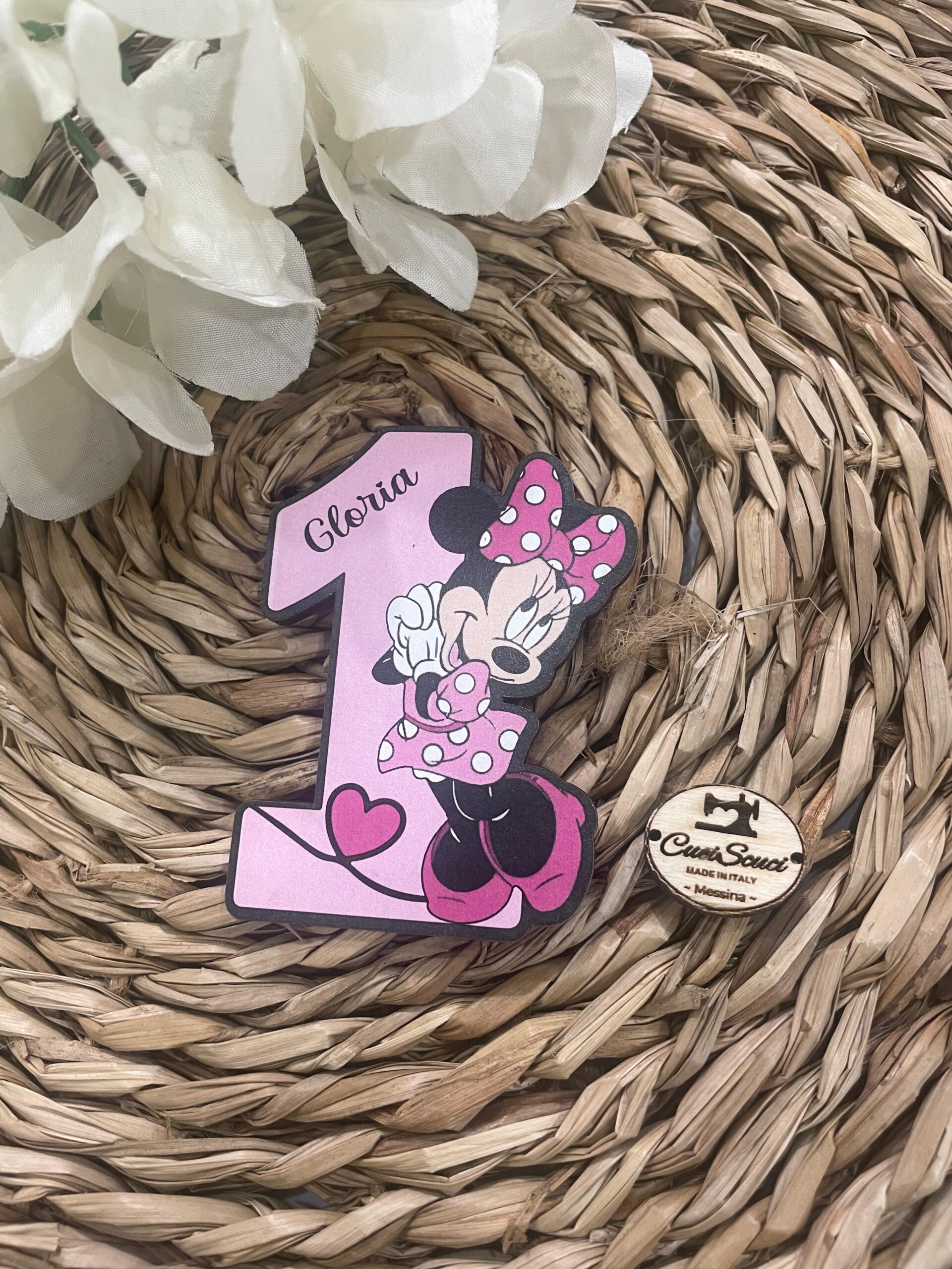 Questa dolcissima calamita in legno stampato è il ricordo perfetto per celebrare un’occasione speciale! Realizzata con taglio laser di precisione, ha la forma di un numero personalizzabile ed è decorata con la tenera Minnie in versione rosa.