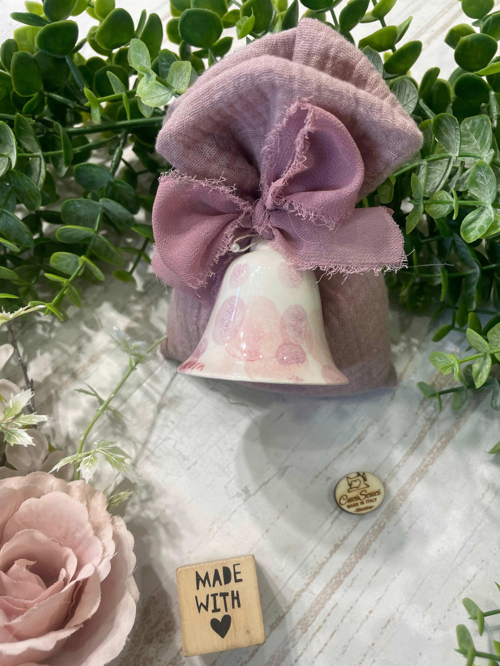 🔔 Campanella in Ceramica con Decoro Bolle di Sapone Rosa 🔔 by Nonna Rosa Art. R160.BS