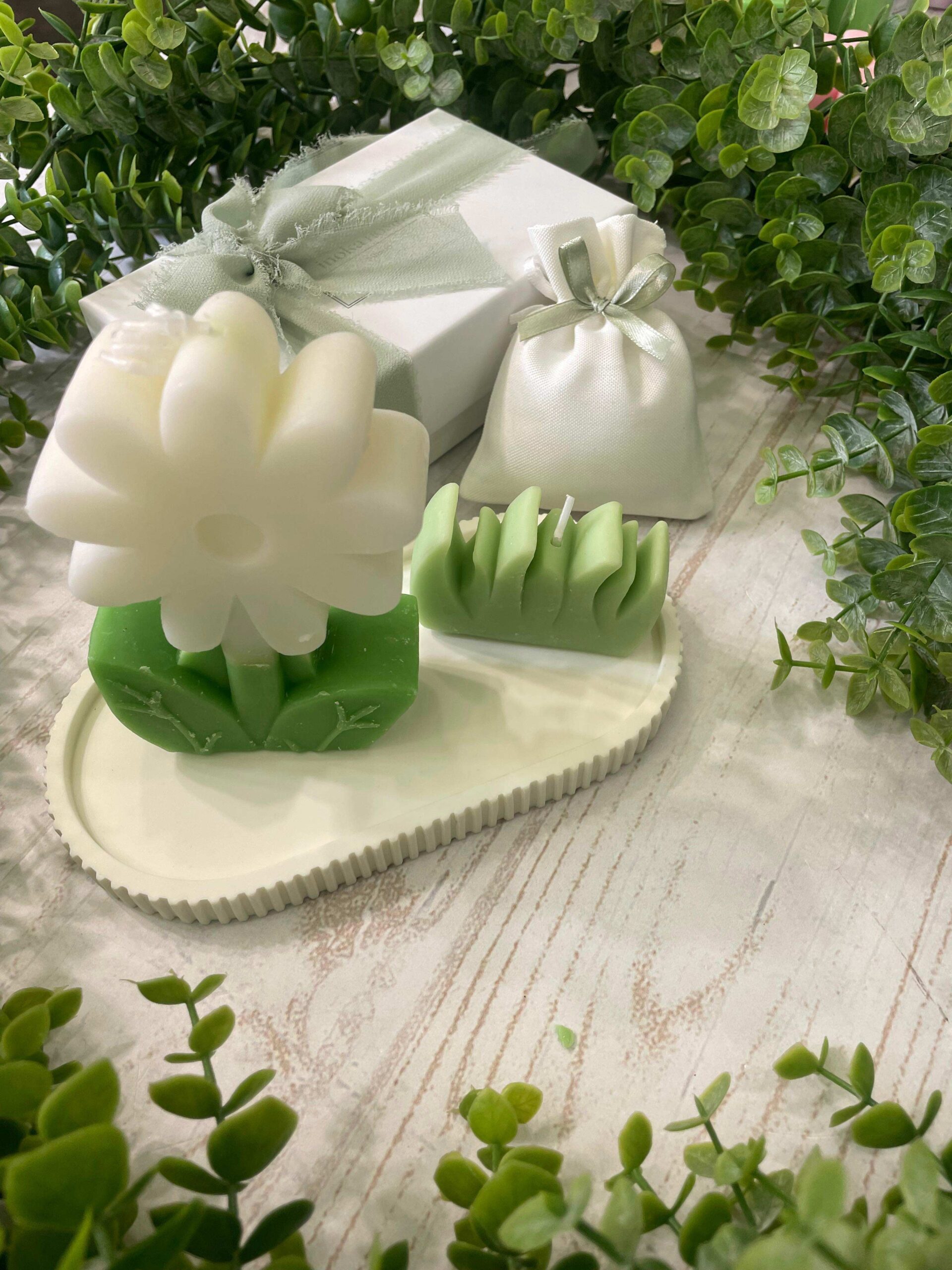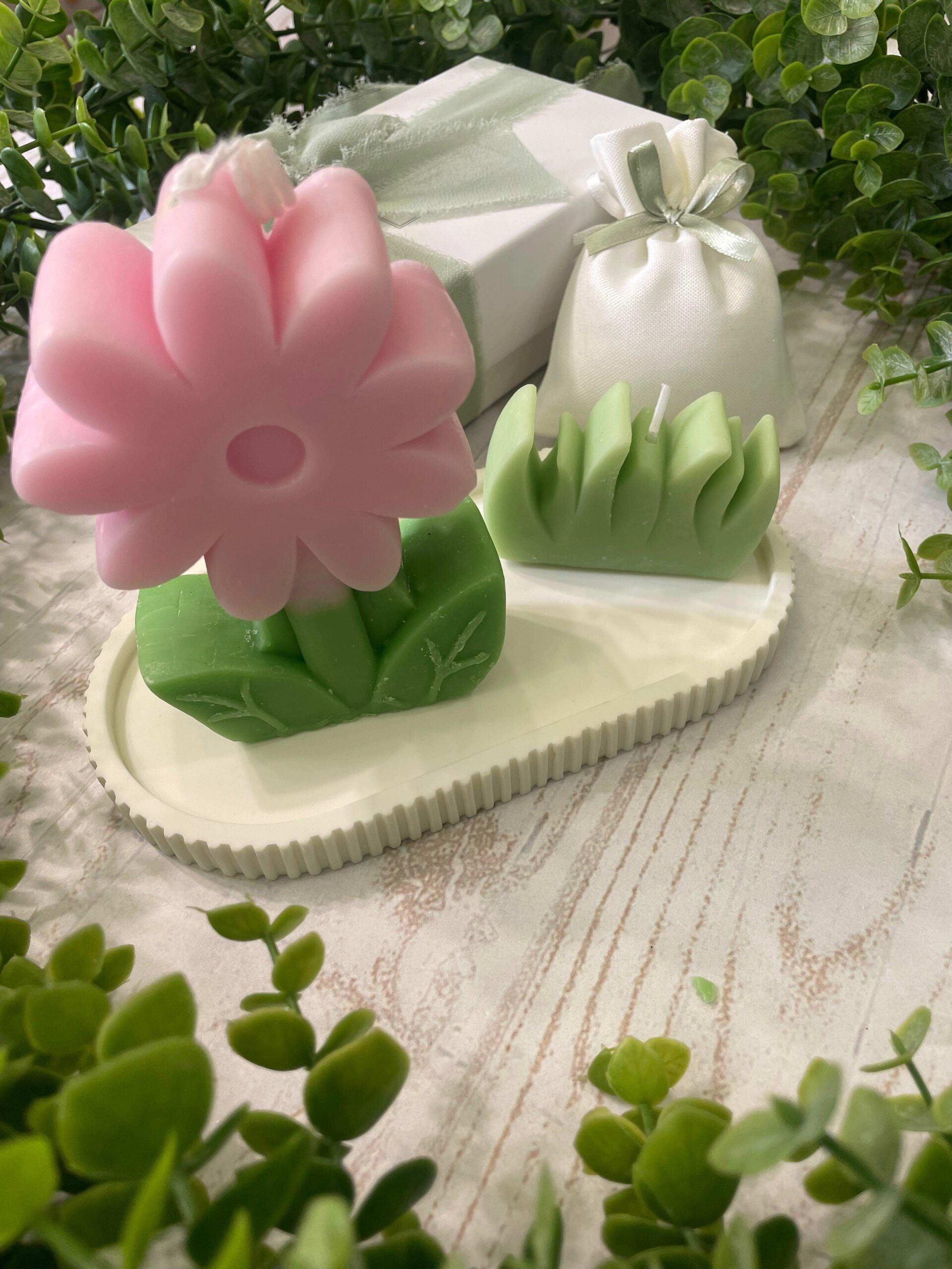 Bomboniera dolce e raffinata composta da una delicata margherita in cera, realizzata come candela decorativa, accompagnata da una piccola erbetta in cera coordinata, anch’essa candela. Una composizione luminosa e armoniosa, perfetta per celebrare eventi speciali con uno stile romantico, naturale e senza tempo.