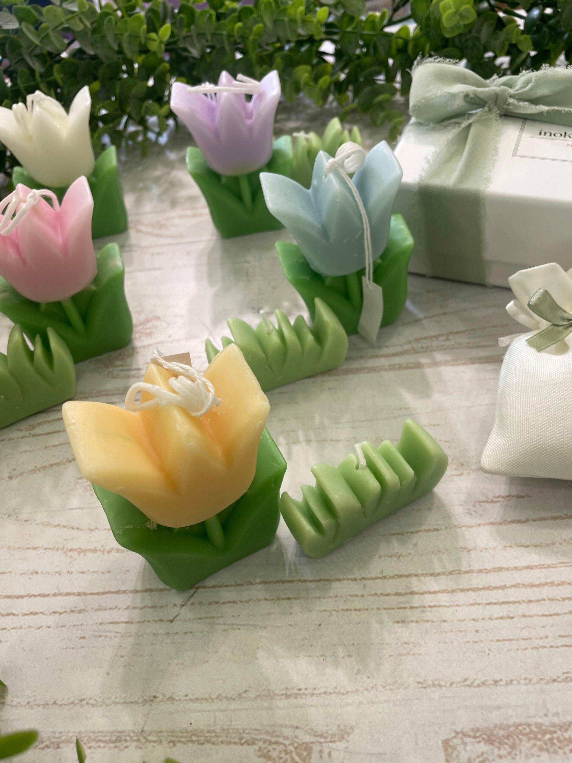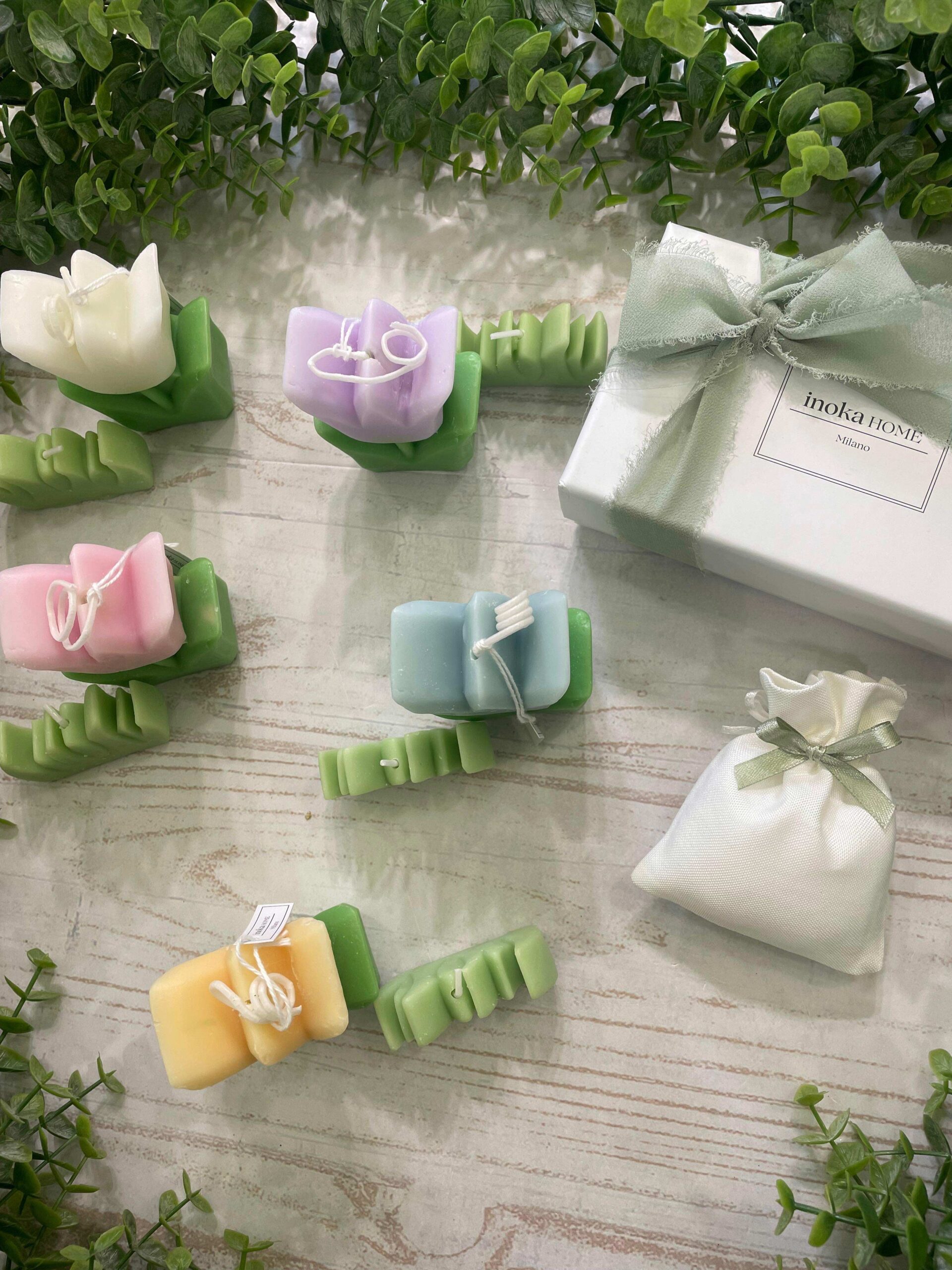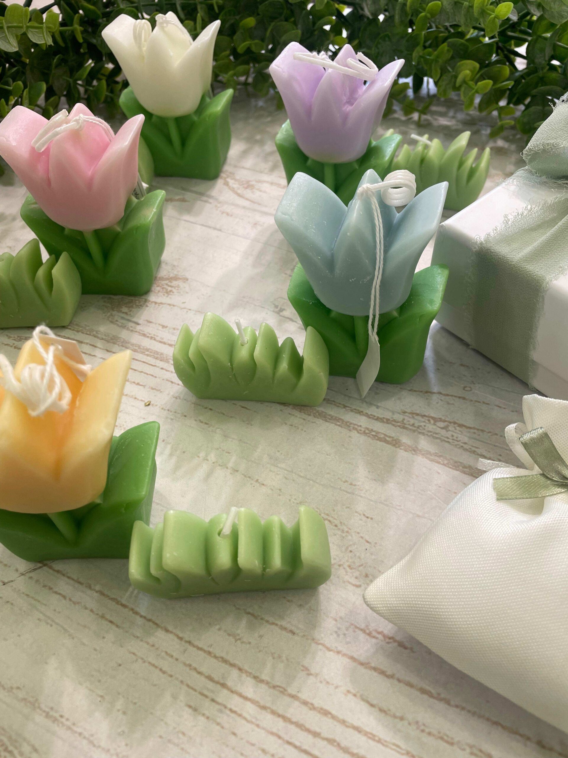 Bomboniera raffinata e delicata composta da un romantico tulipano in cera, realizzato come candela decorativa, accompagnato da una piccola erbetta in cera coordinata, anch’essa candela. Una composizione armoniosa e poetica, pensata per celebrare momenti speciali con un oggetto artigianale dal fascino dolce e senza tempo.