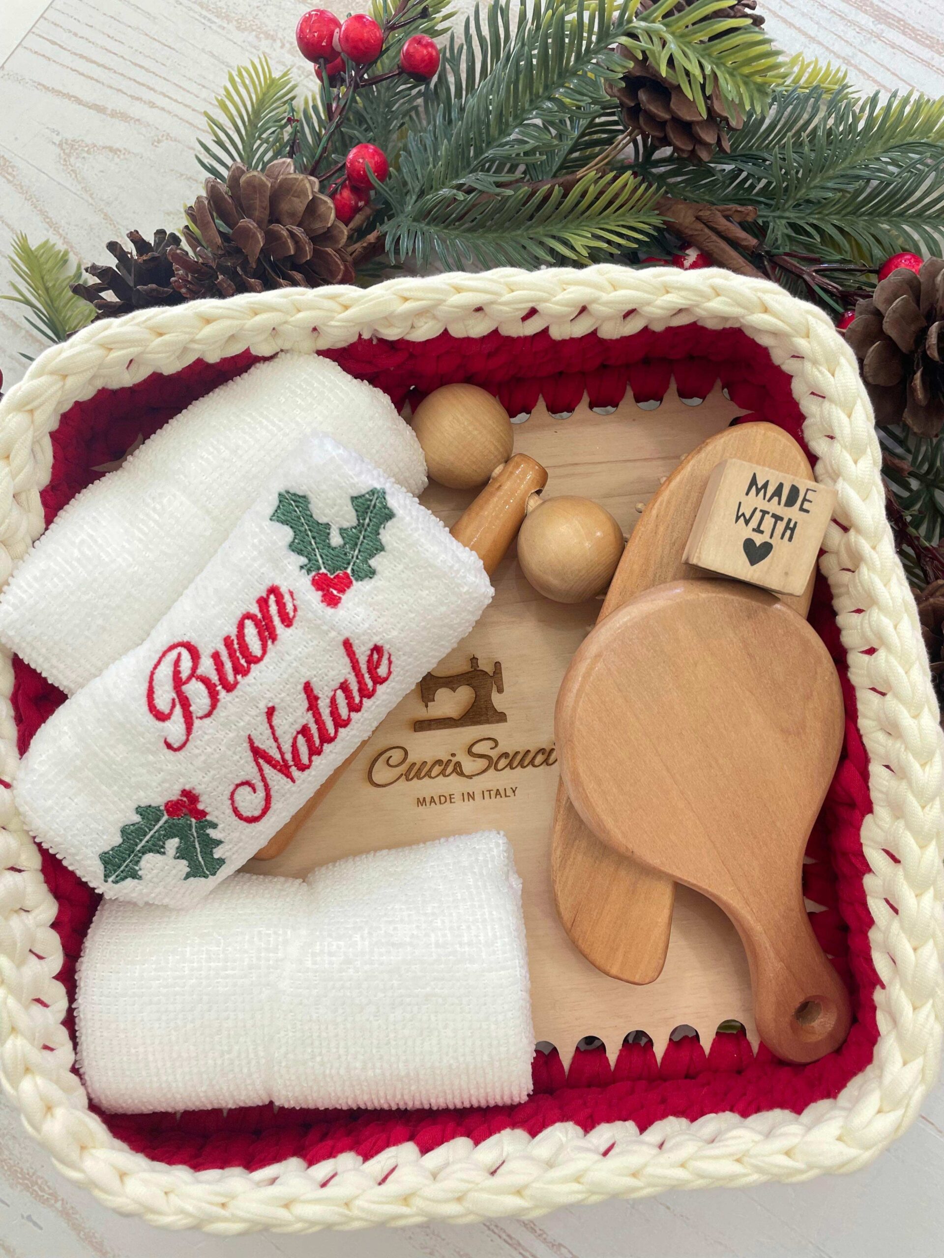 La confezione in metallo custodisce con cura 4 morbide lavette (2 bianche e 2 rosse), una delle quali impreziosita dal ricamo “Buone Feste”, per aggiungere un dettaglio caldo e celebrativo alla stagione natalizia 🎄
