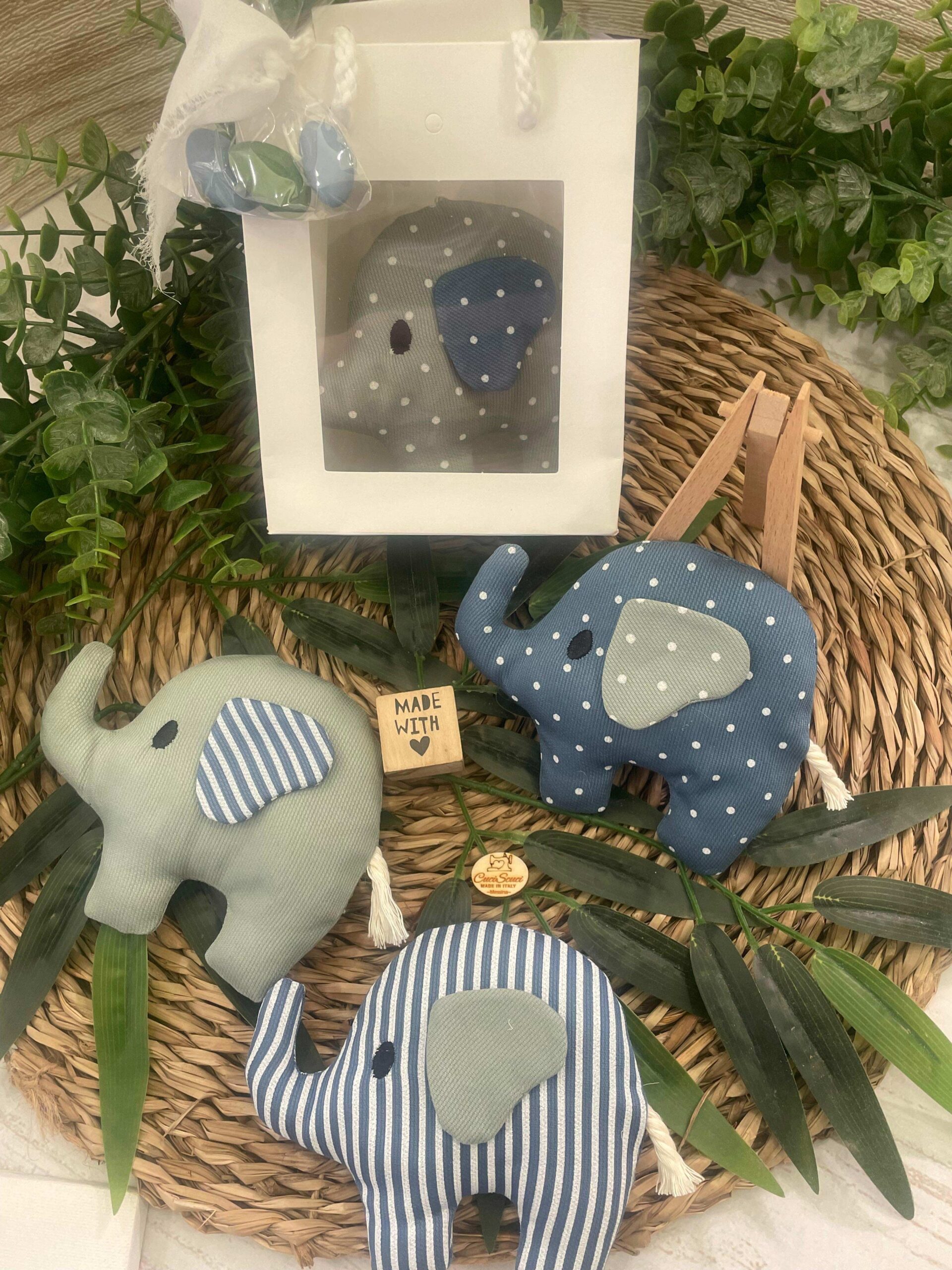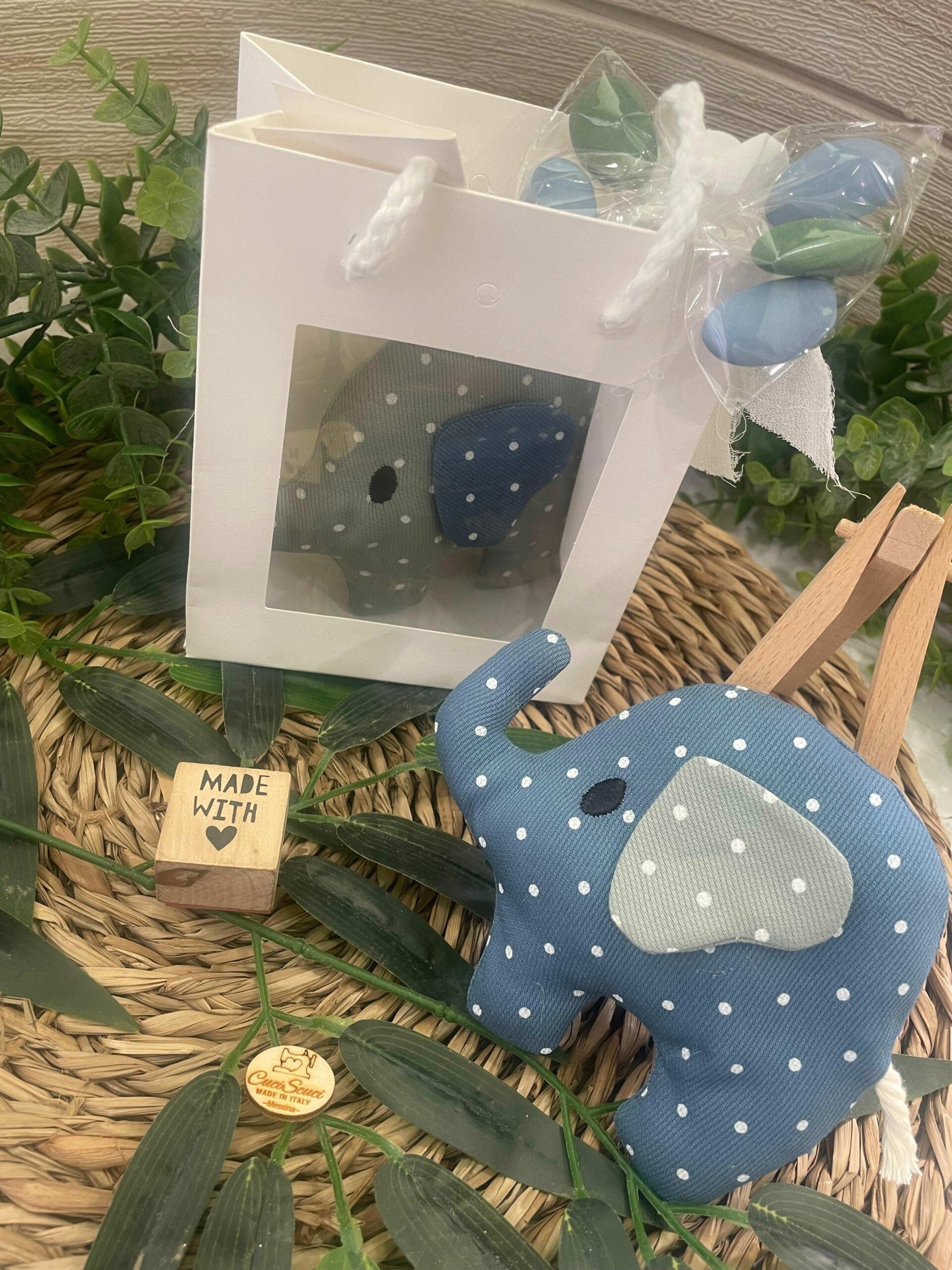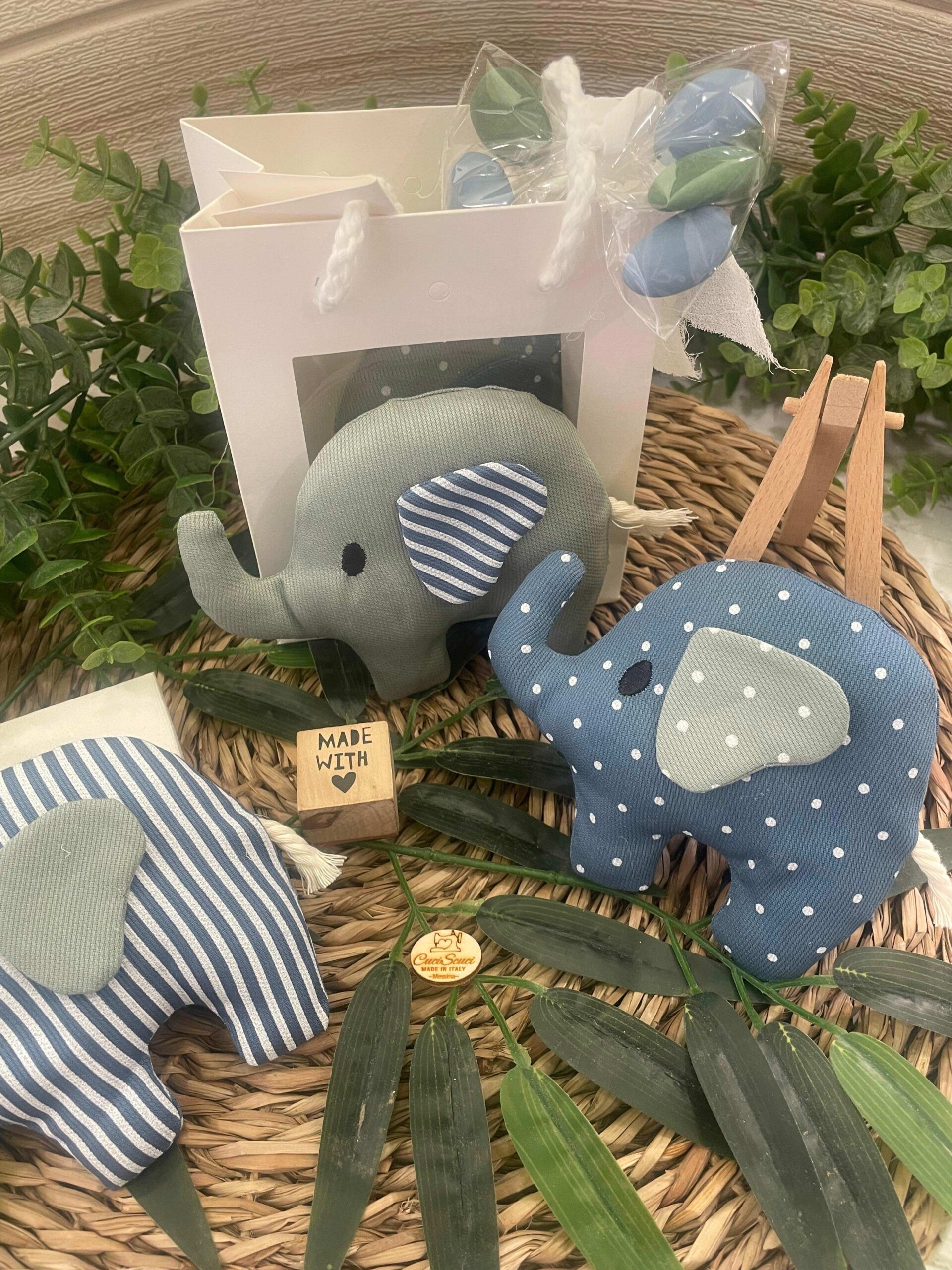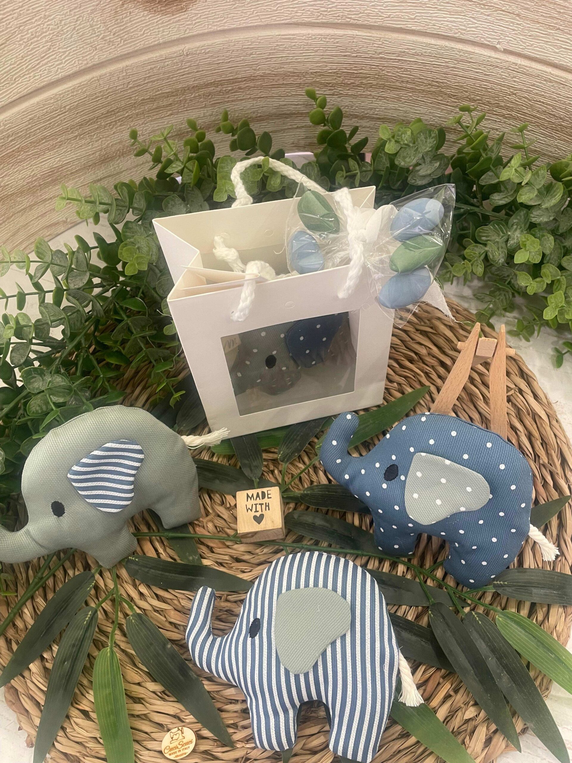 ✨ Elefantino Portachiavi Artigianale in Cotone Rigatino con Papillon e Shopper ✨