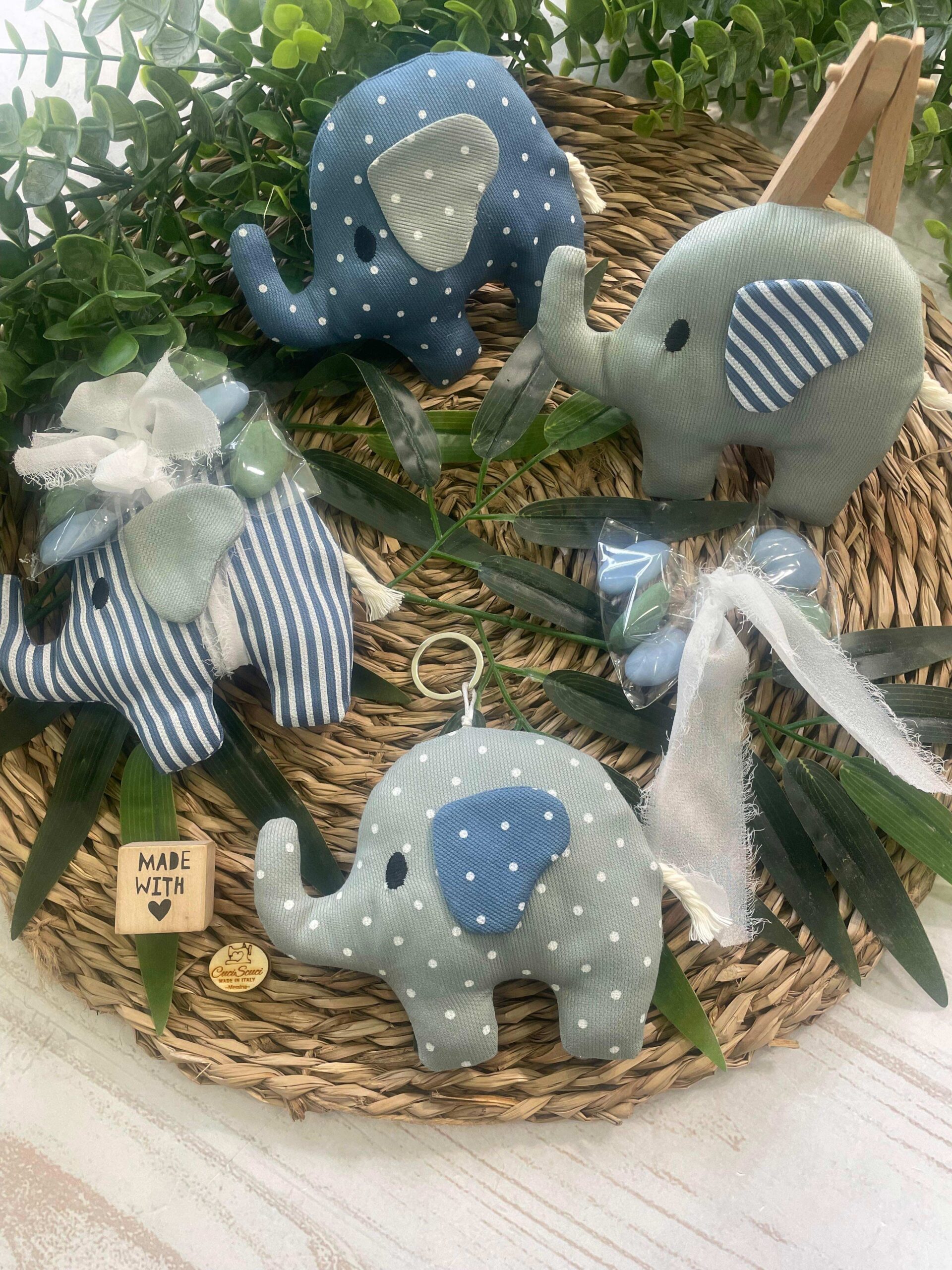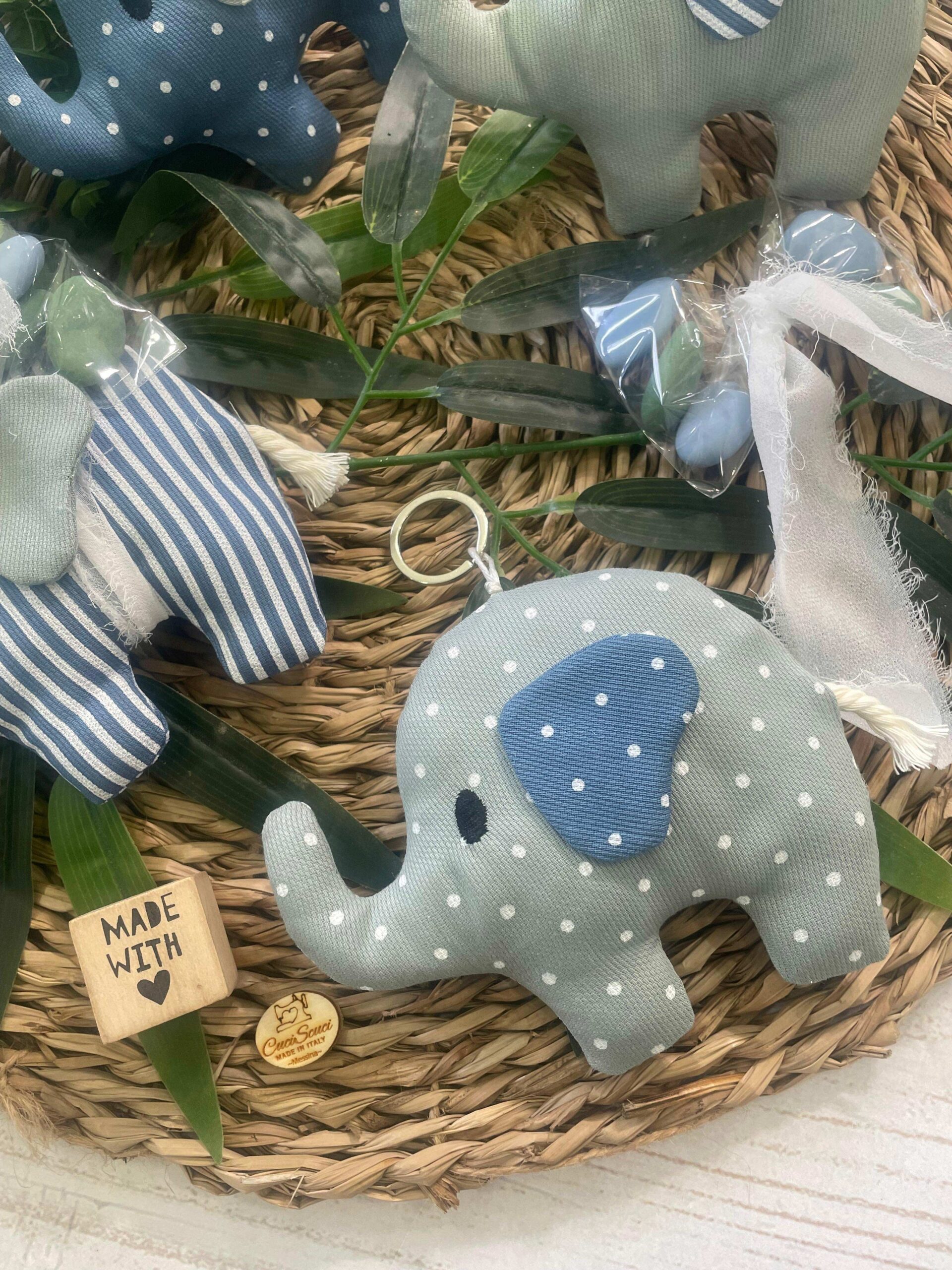 Un dolce elefantino portachiavi artigianale, realizzato con cura sartoriale e attenzione ai dettagli dalla nostra sartoria.