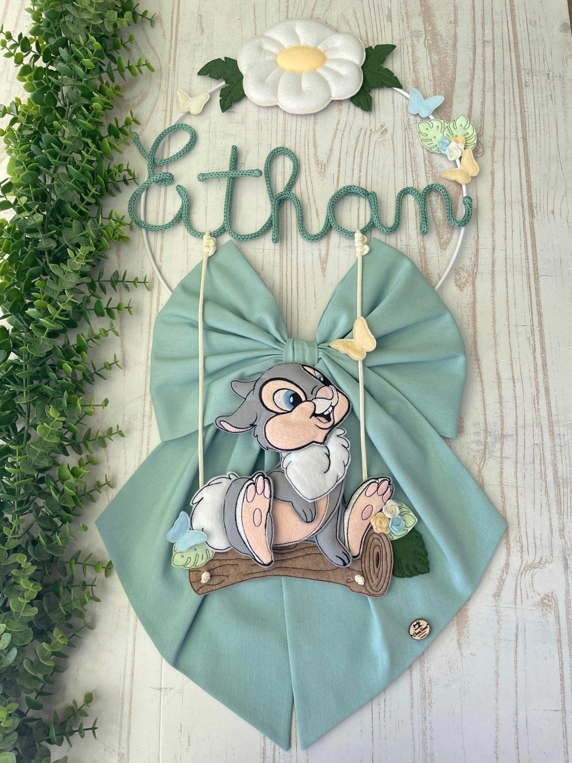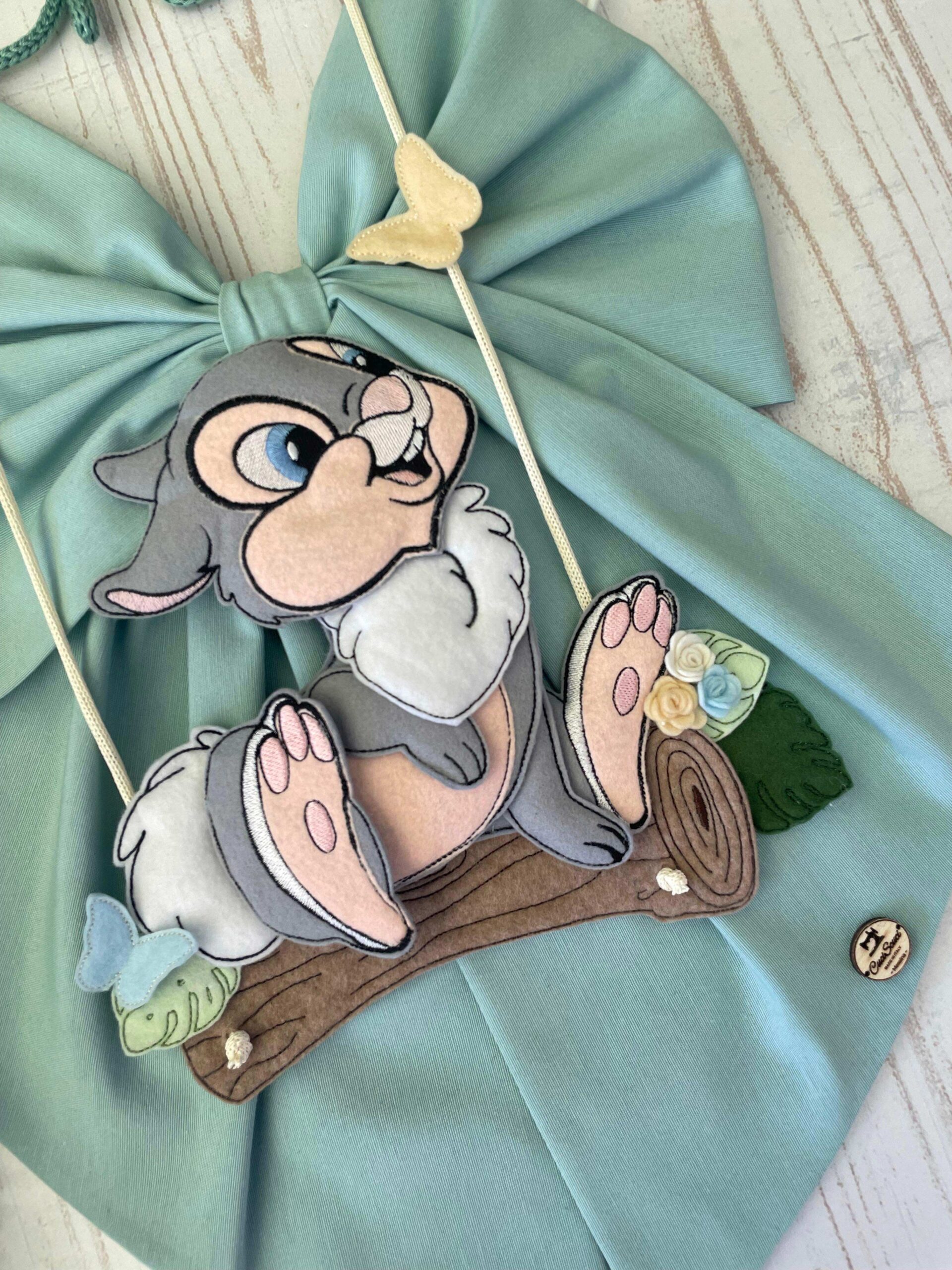Dal fiocco pende il tenero coniglietto Disney Tamburino in pannolenci tridimensionale.