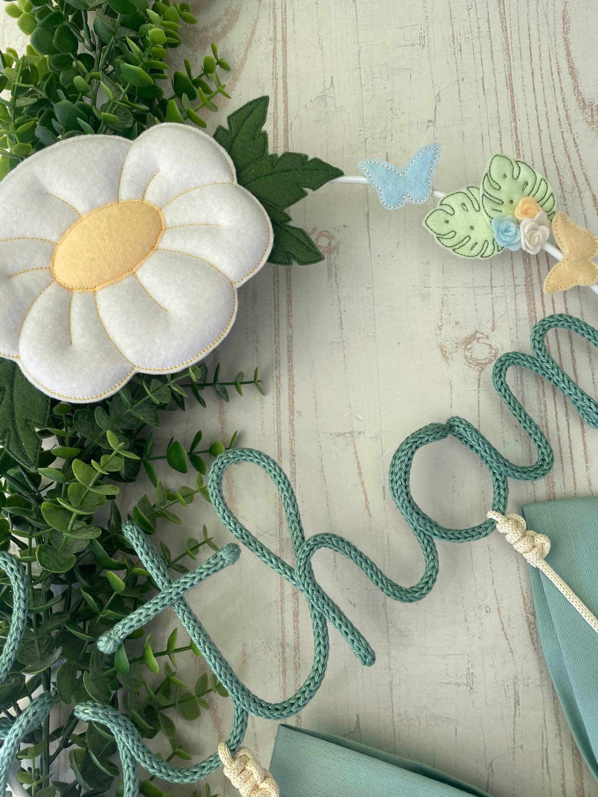 Il fiocco, in cotone verde menta 703, è stato realizzato interamente a mano dalla nostra sartoria.