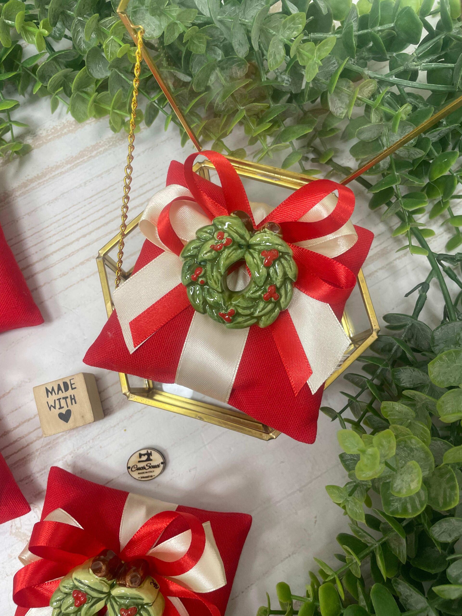 Calamita Corona Alloro “Laurea” in Ceramica Artigianale siciliana “Nonna Rosa” dipinto interamente a mano.