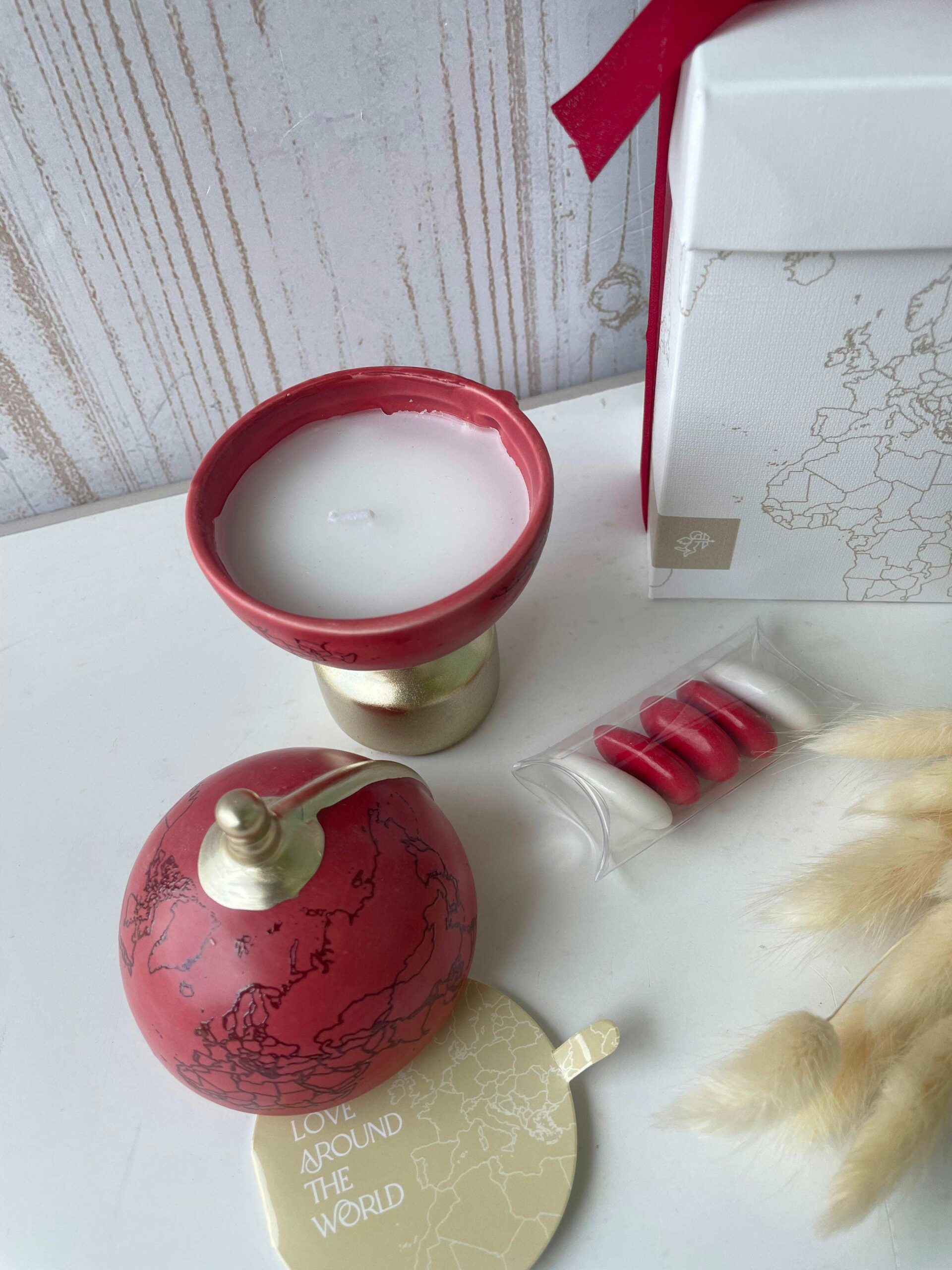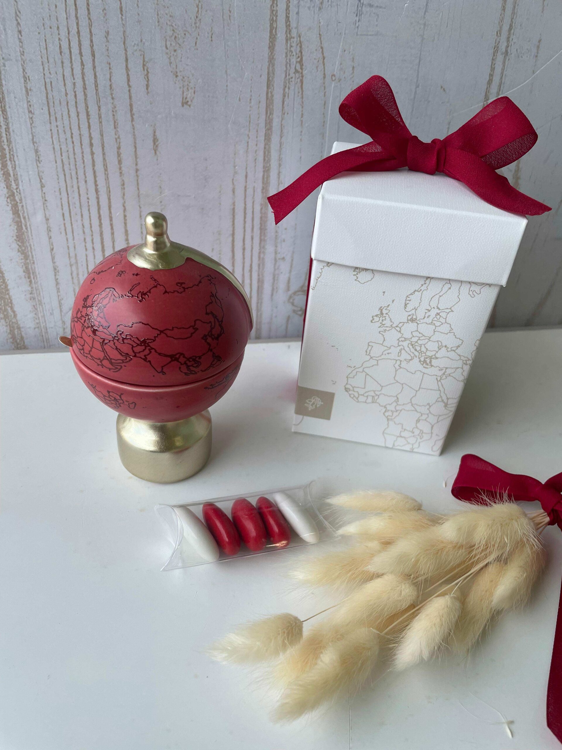 Un’originale candela profumata racchiusa in un mappamondo bordeaux, con finiture dorate che ne esaltano l’eleganza. Art. 249352S