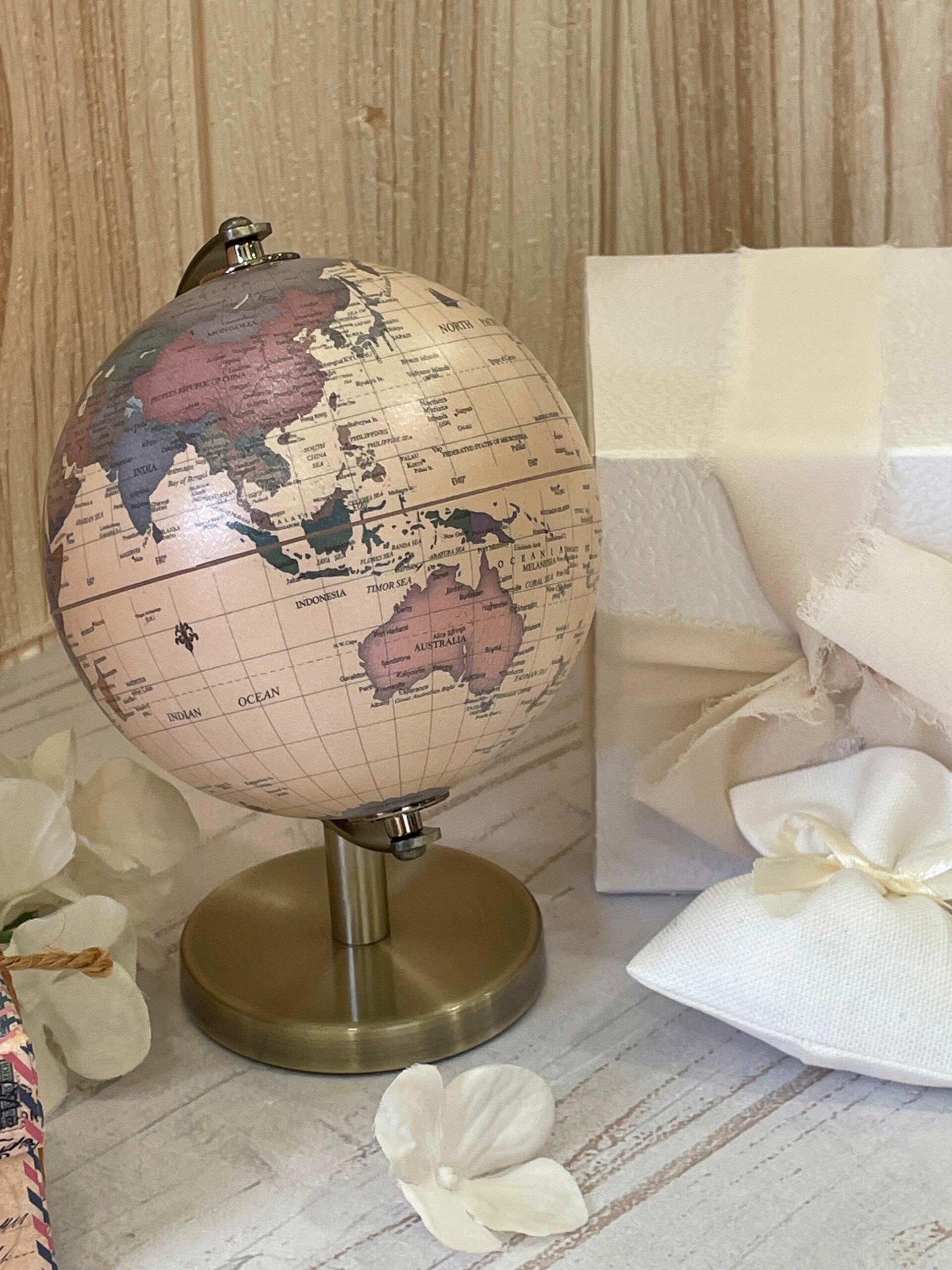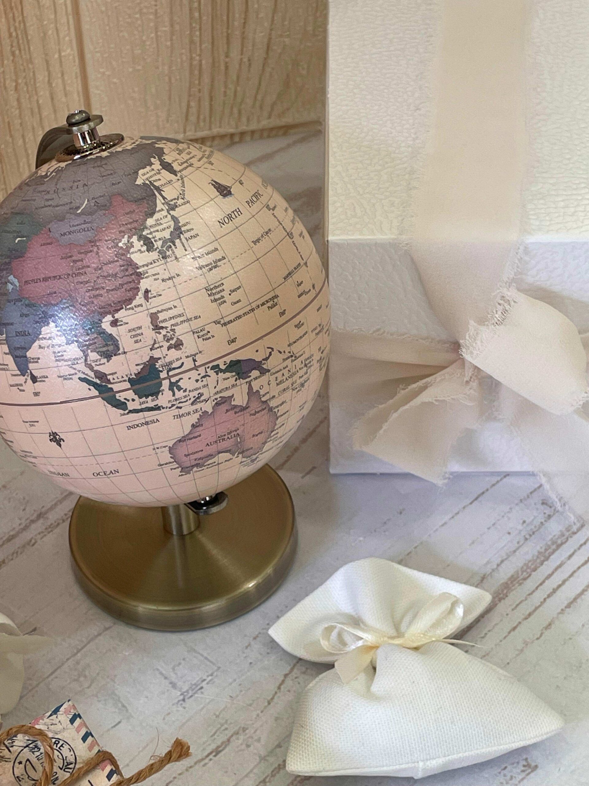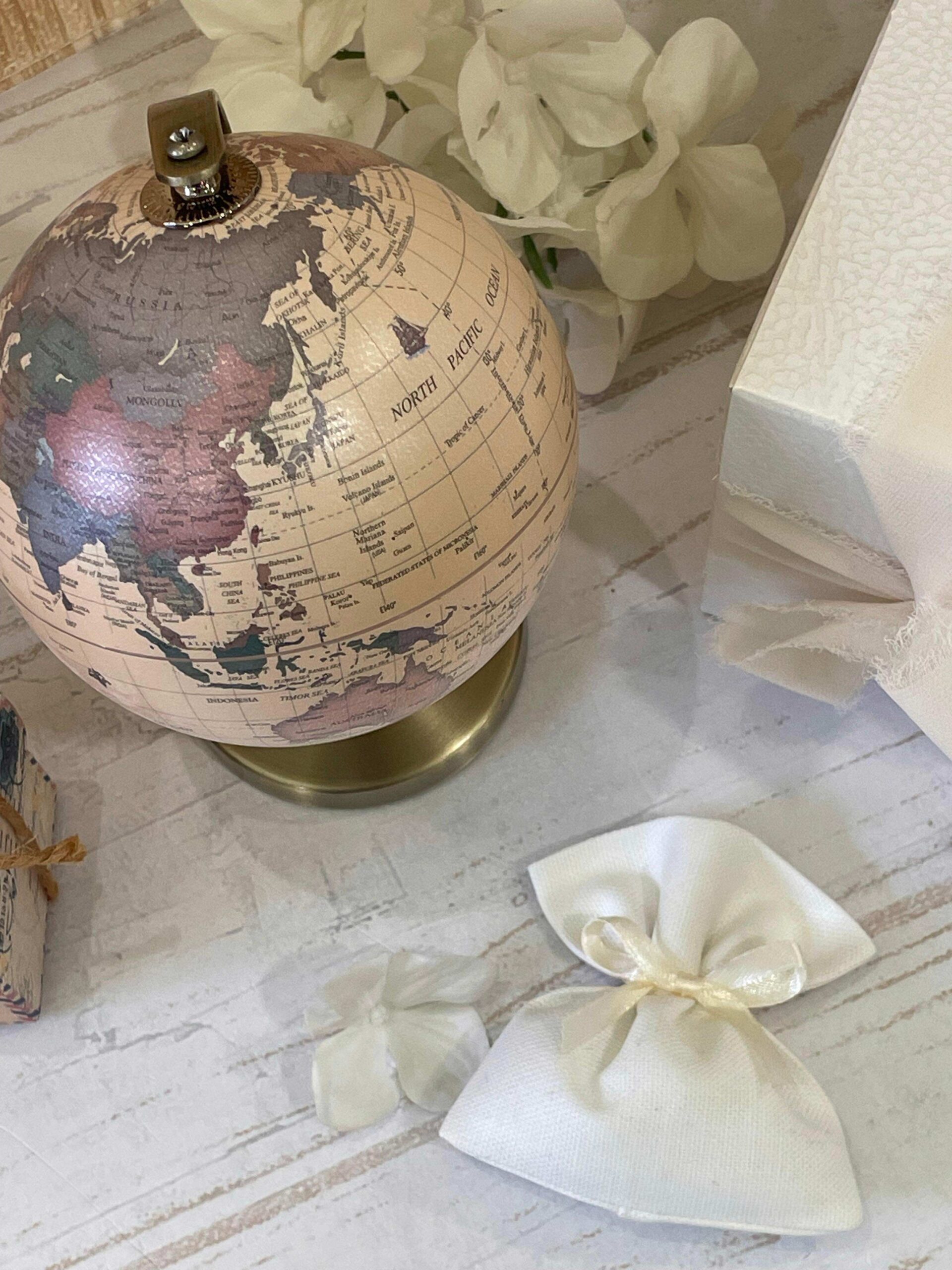 Oggetto simbolico e decorativo, il mappamondo rappresenta il viaggio, la scoperta e l’apertura verso il futuro, rendendolo una bomboniera originale e di grande personalità, perfetta per eventi importanti celebrati con gusto e attenzione ai dettagli.