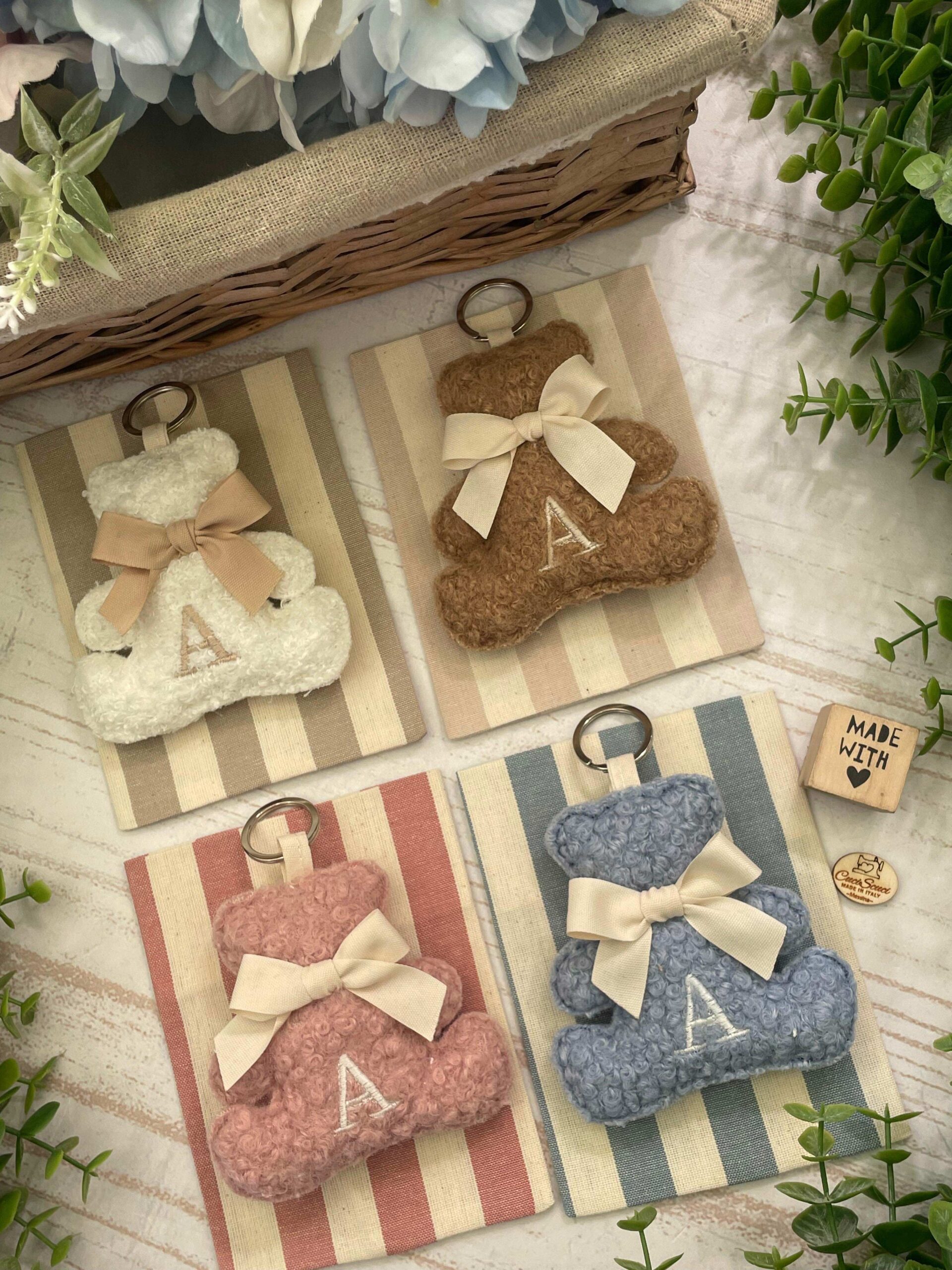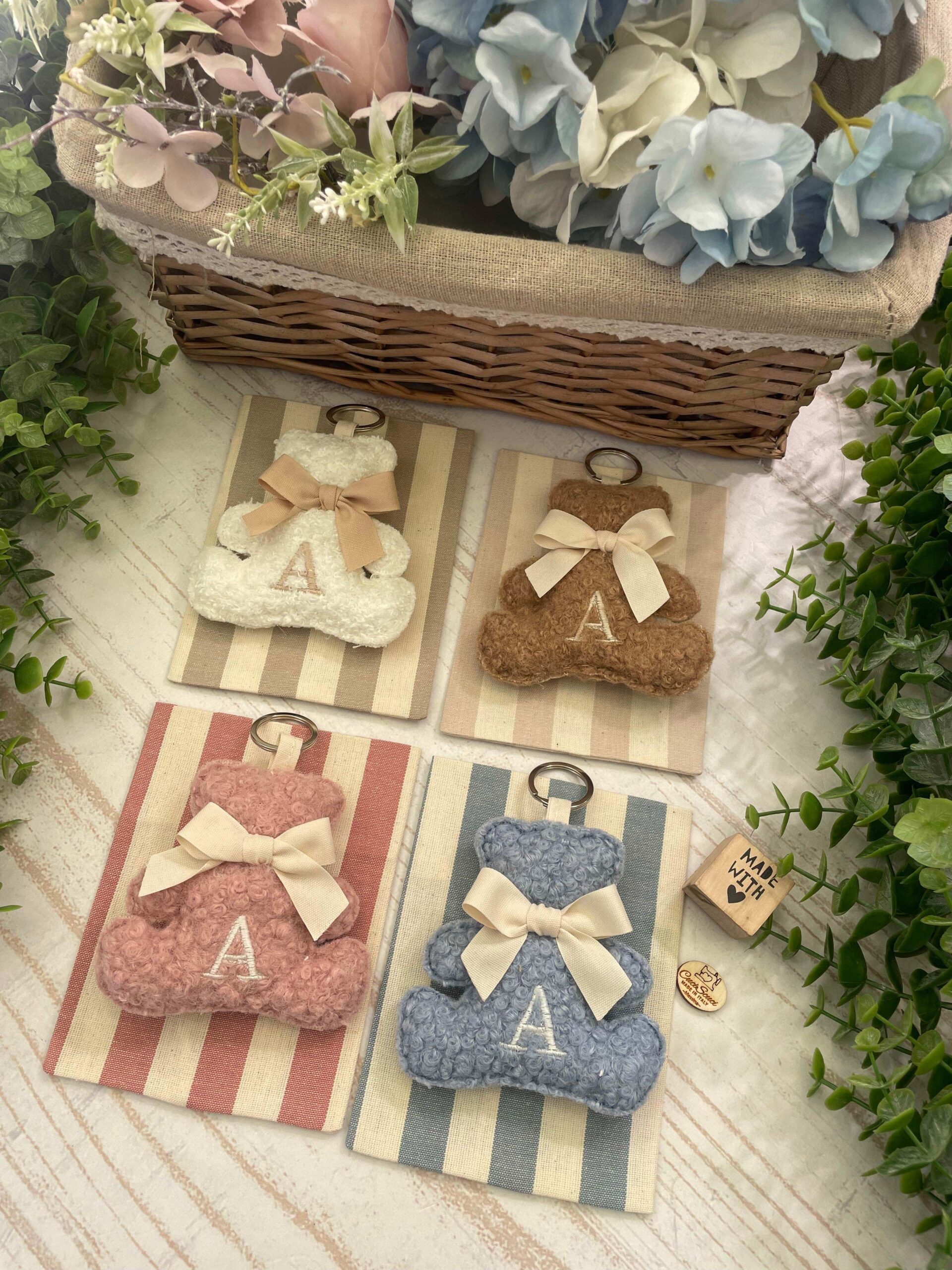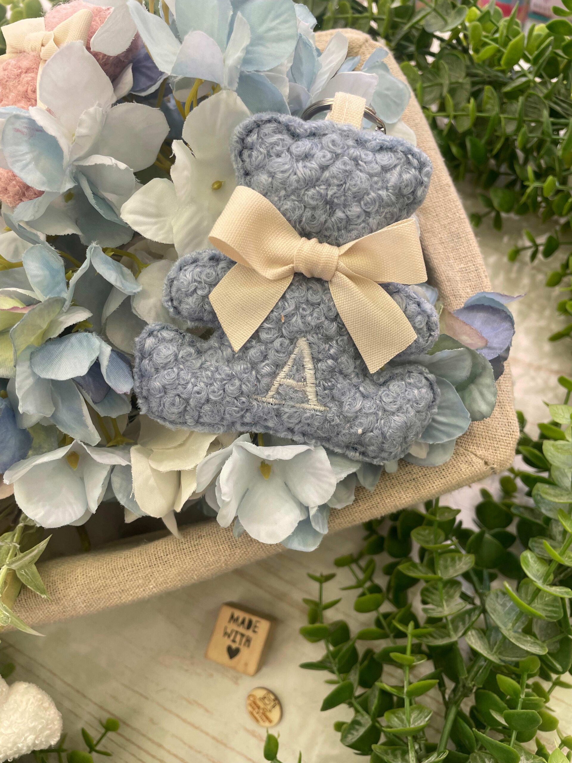 • Solo orsetto con iniziale ricamata – portachiavi personalizzato con iniziale