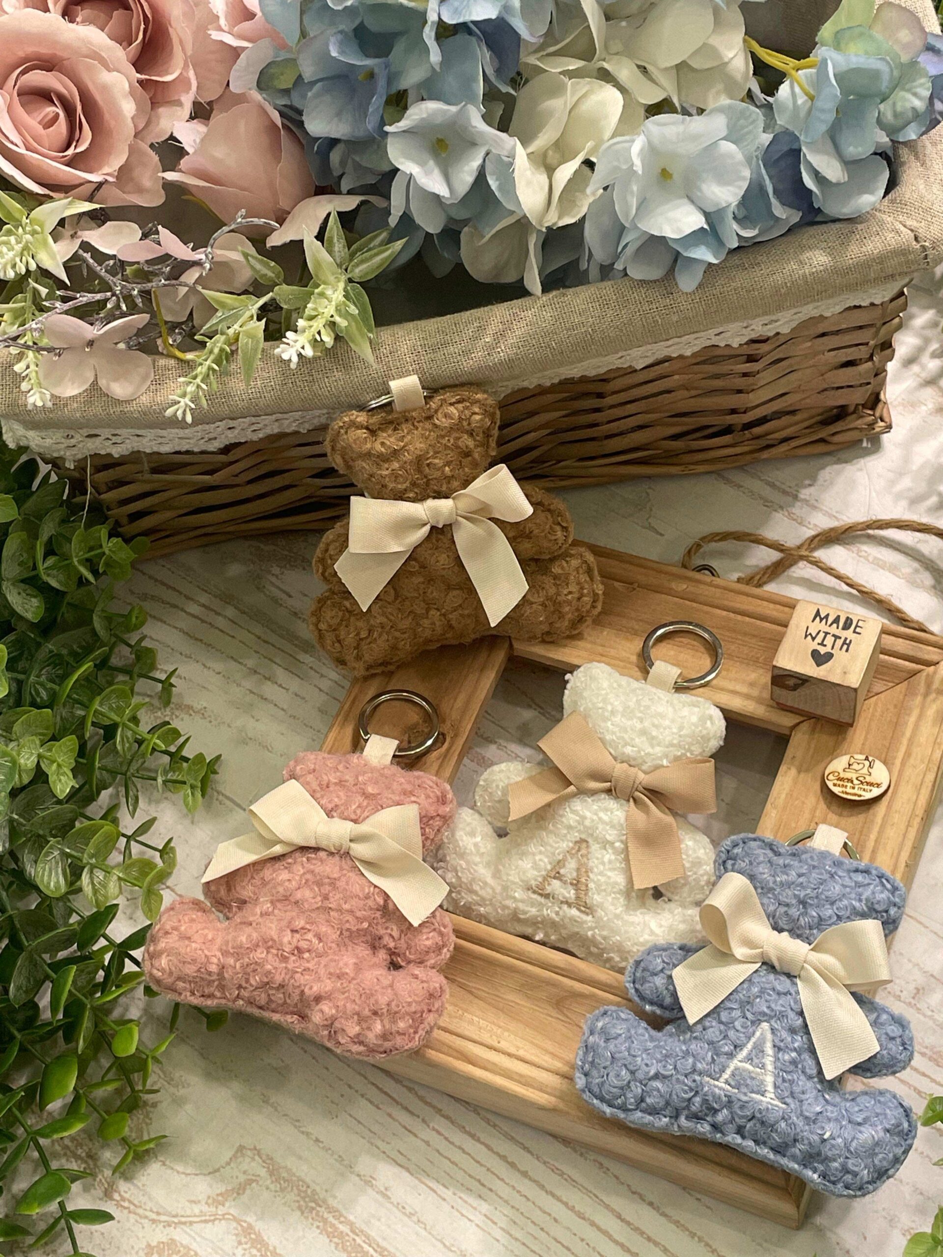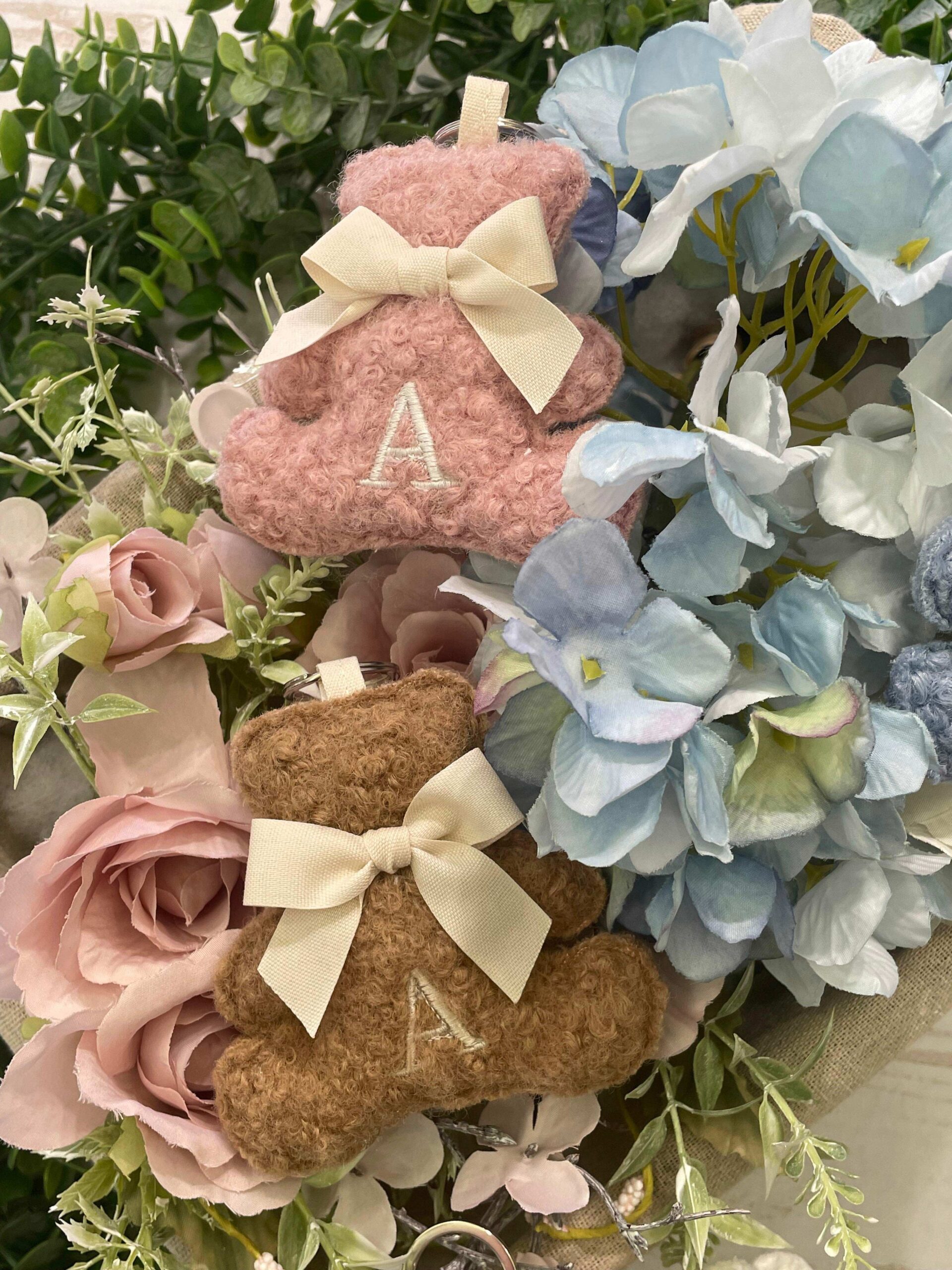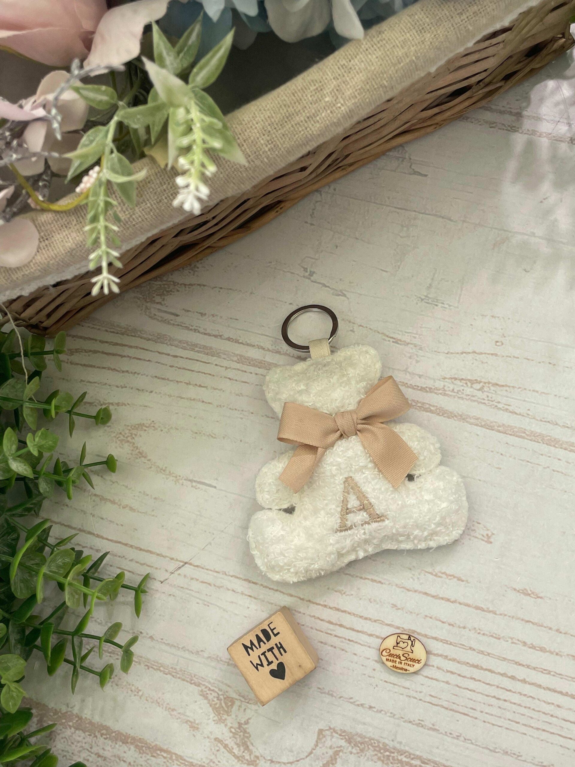 • Solo orsetto con iniziale ricamata – portachiavi personalizzato con iniziale