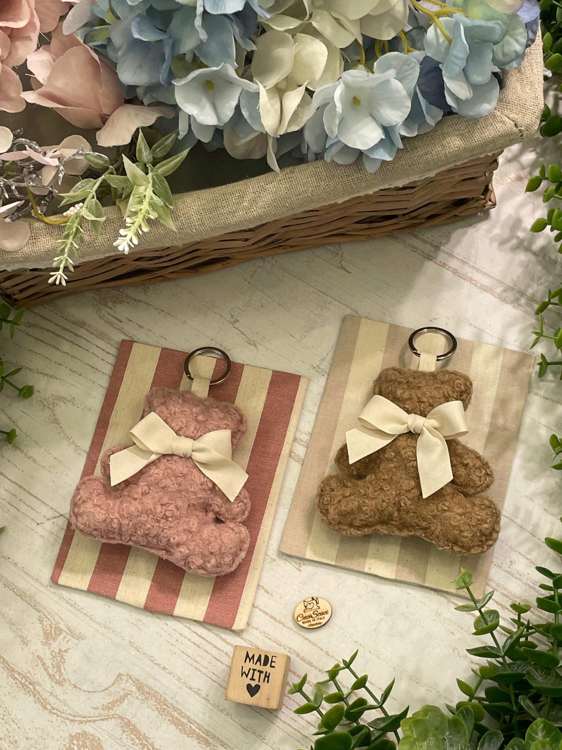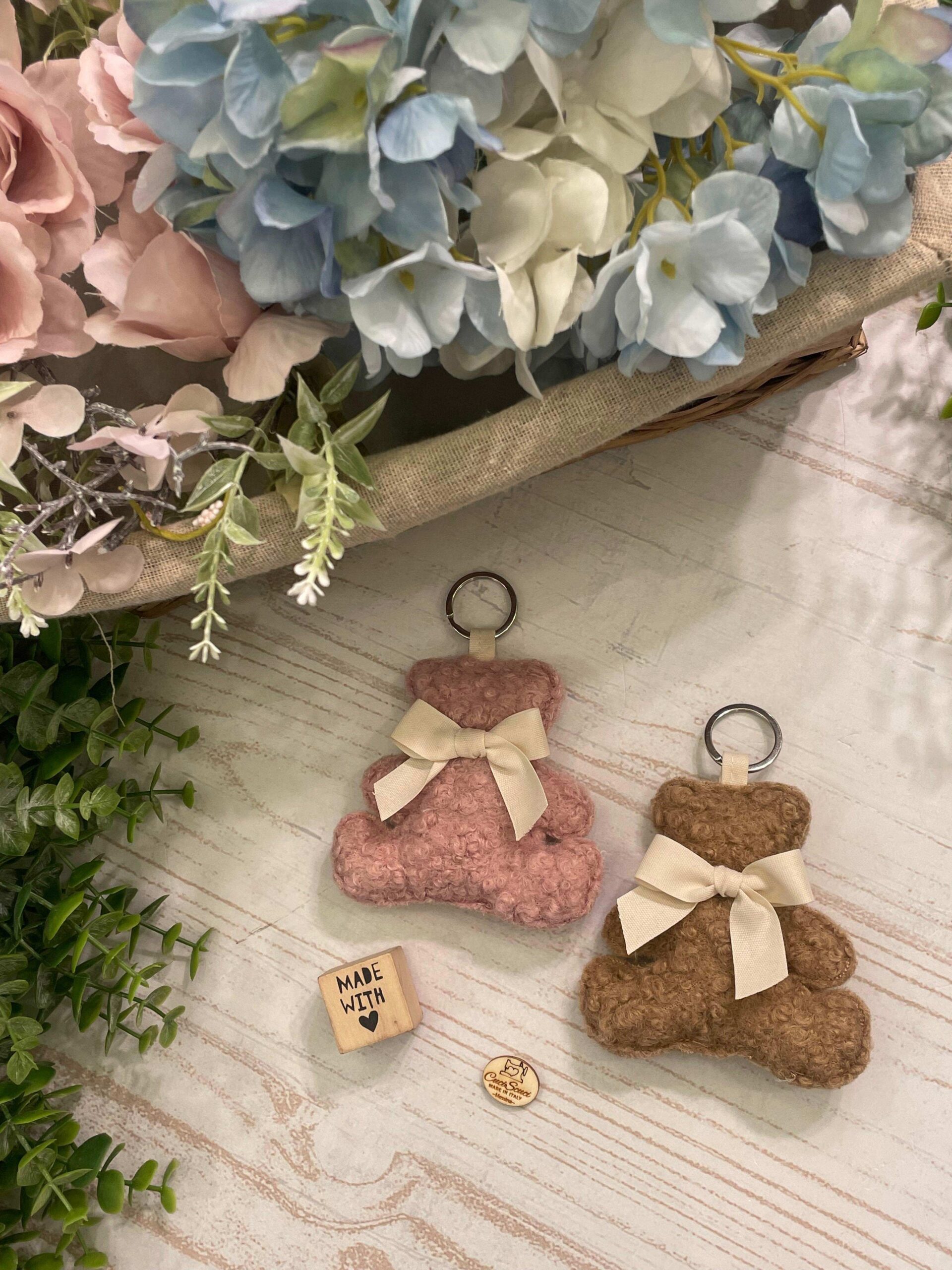 Un tenero orsetto portachiavi artigianale, realizzato con cura e attenzione ai dettagli dalla nostra sartoria.