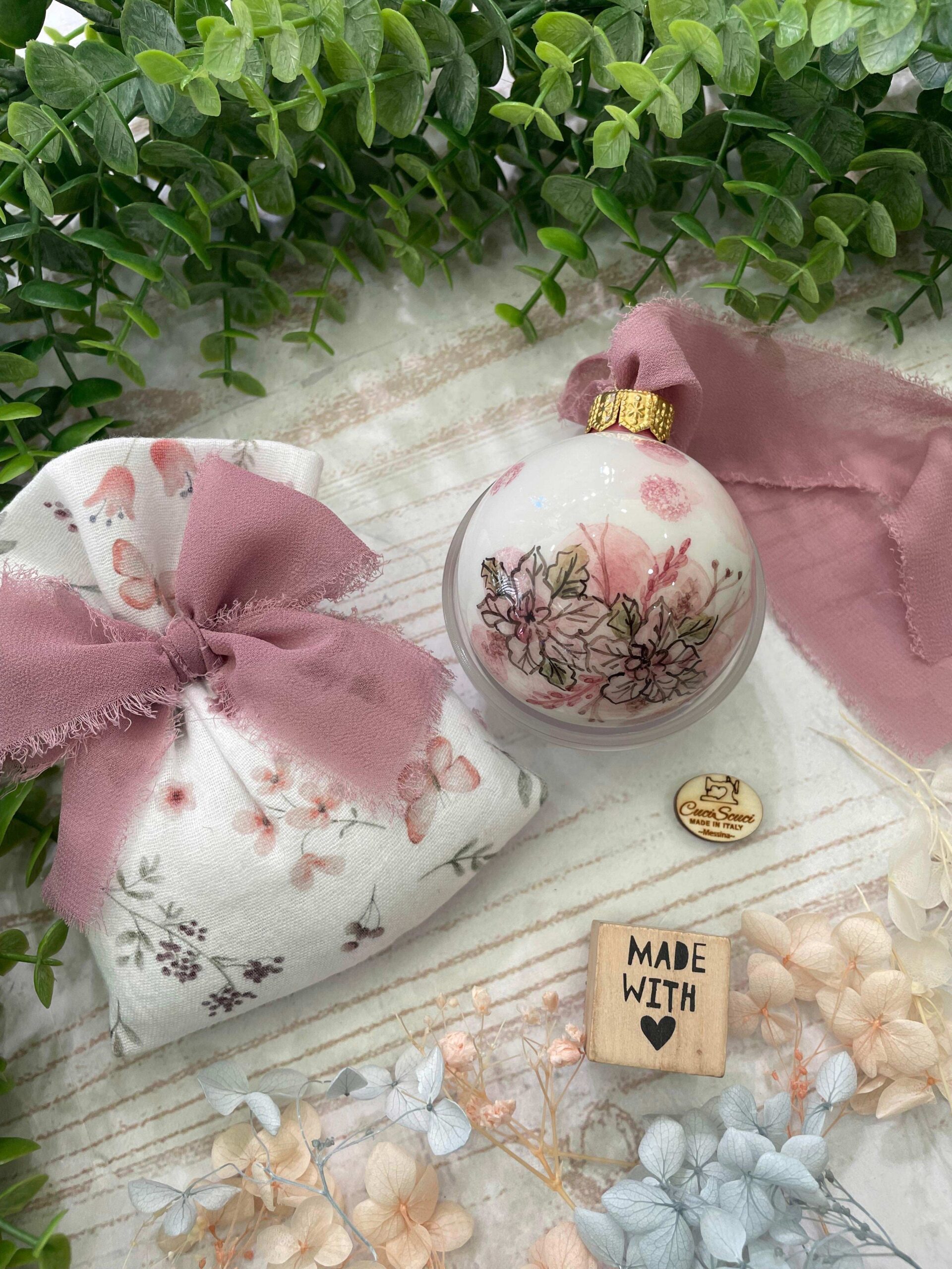 Un oggetto raffinato e ricco di atmosfera, perfetto come bomboniera natalizia o come piccolo dono artigianale da custodire e appendere ogni anno, trasformando un ricordo speciale in una tradizione.