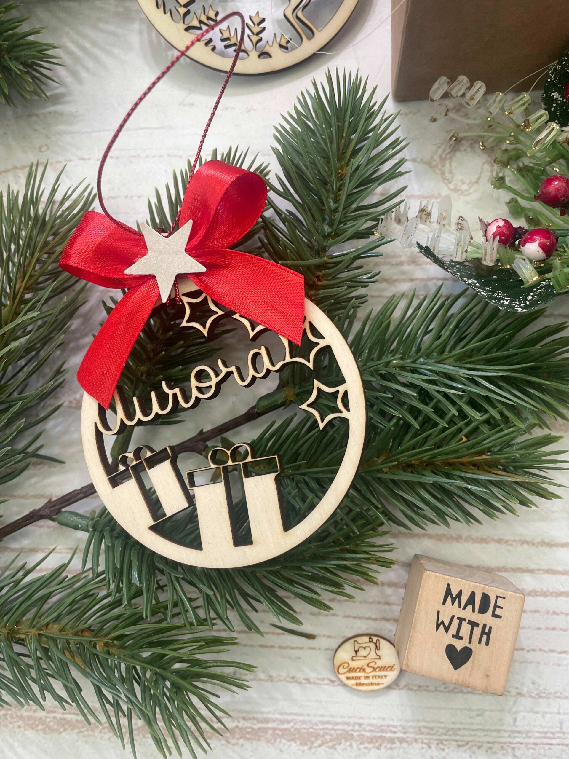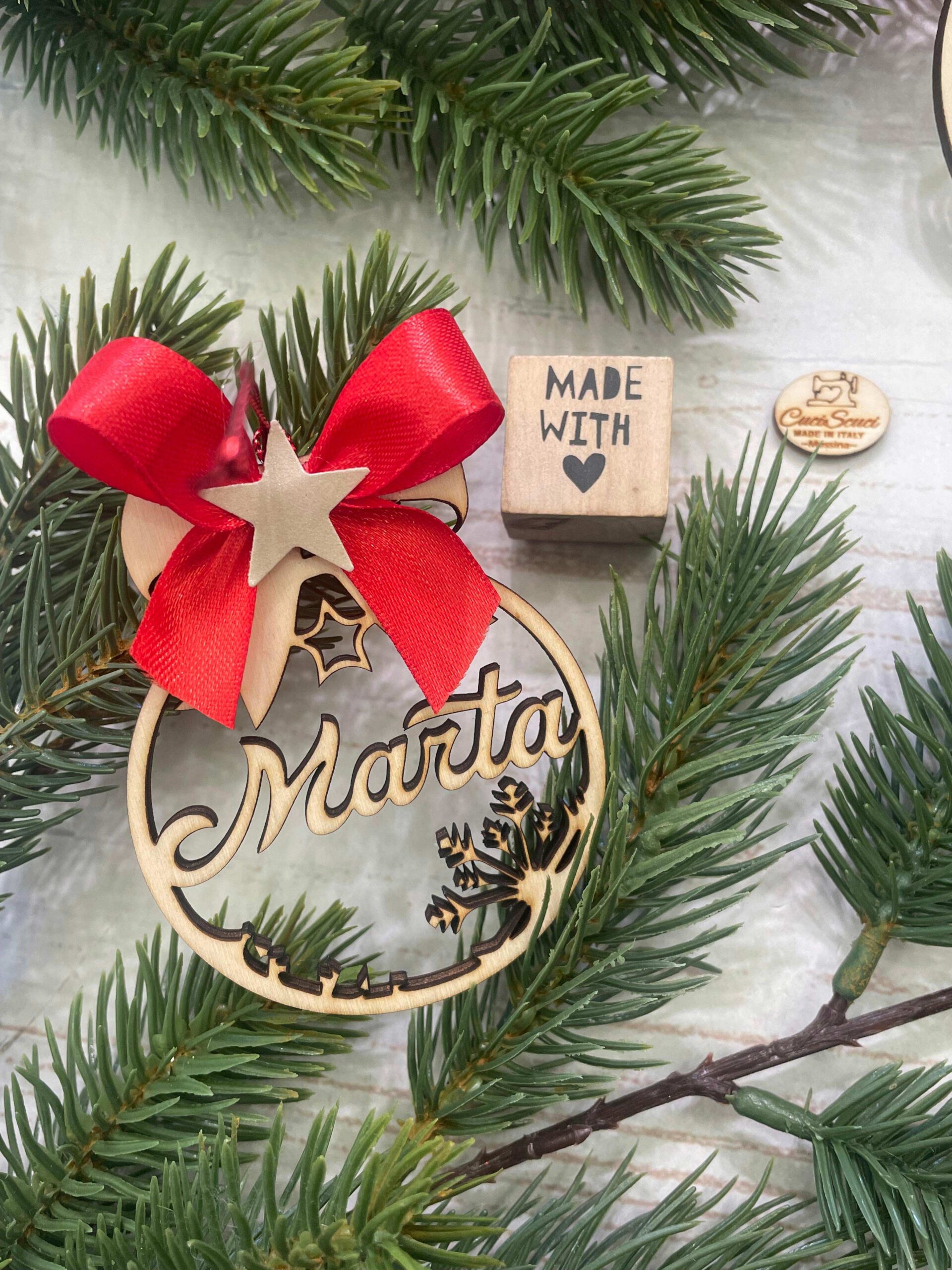 Pallina Natalizia in Legno Incisa e Personalizzata