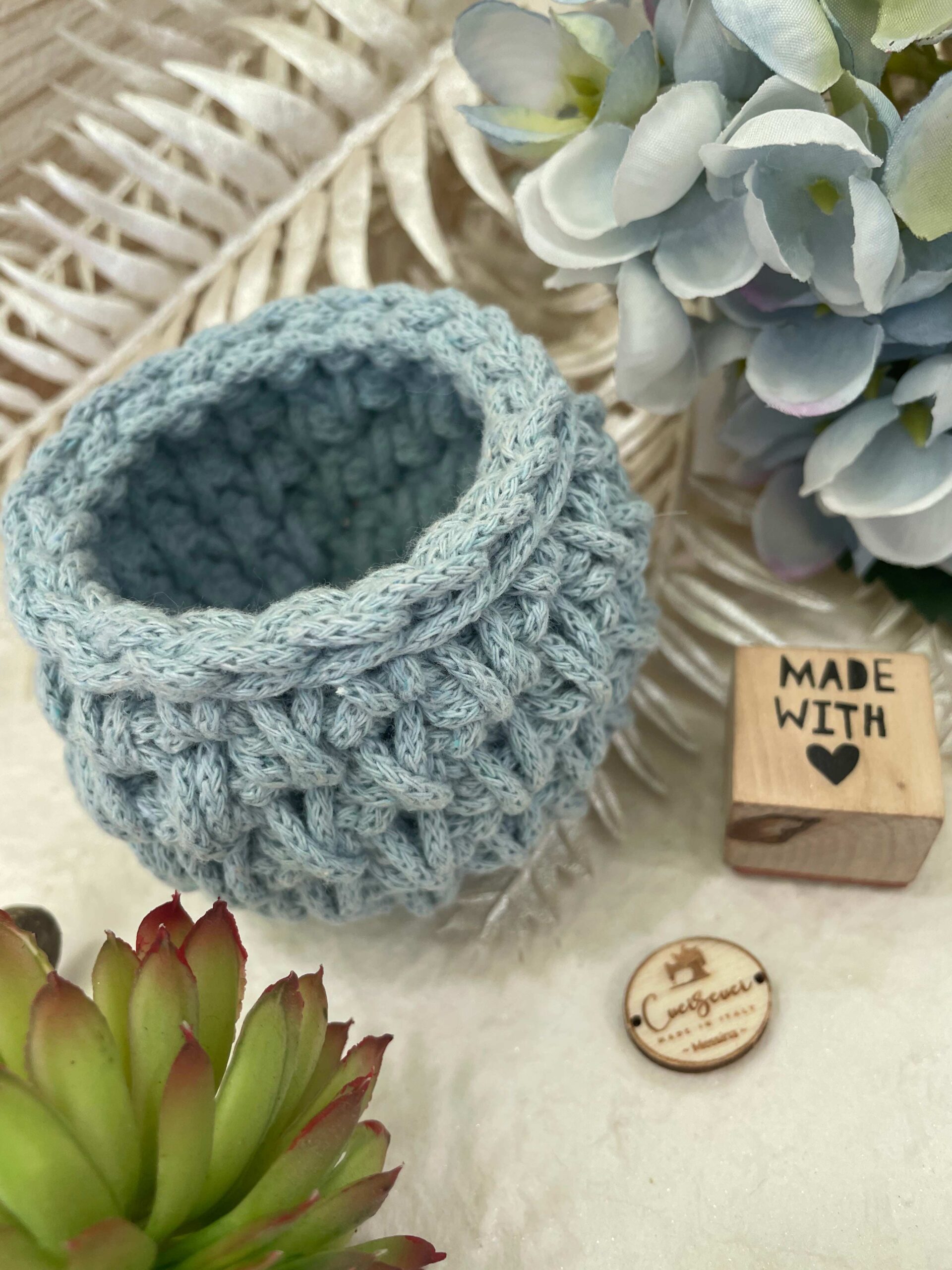 Aggiungi un tocco di stile e artigianalità ai tuoi spazi con questo elegante porta piantina in crochet realizzato a mano. Il design intrecciato, con texture soffice e dettagli accurati, lo rende perfetto per accogliere piccole piante o decorare il tuo ambiente.