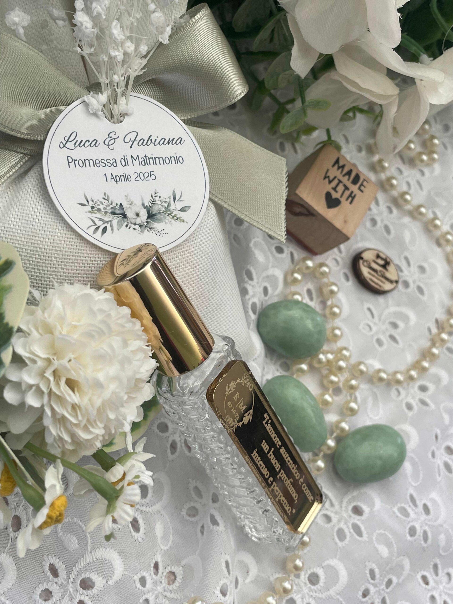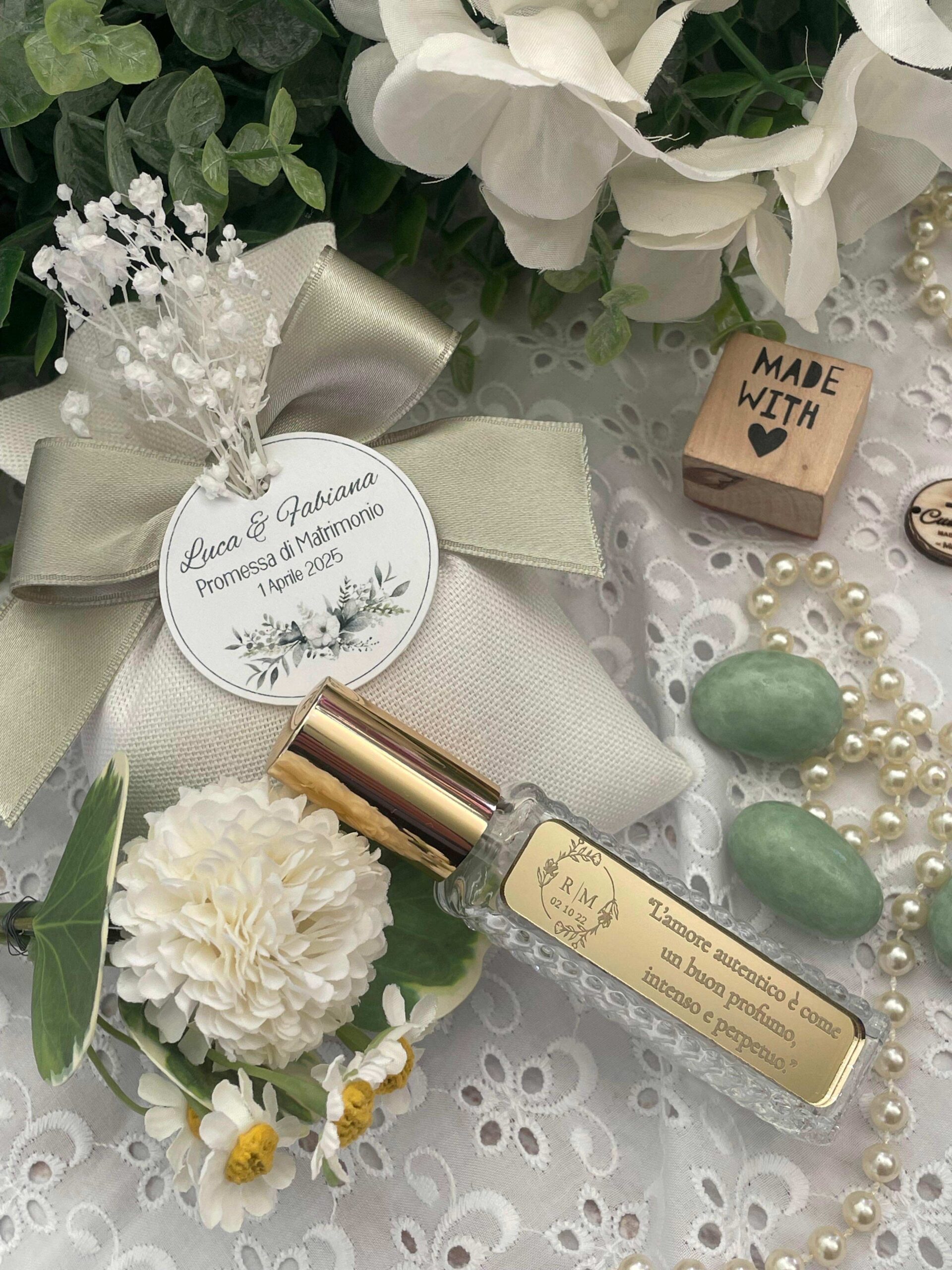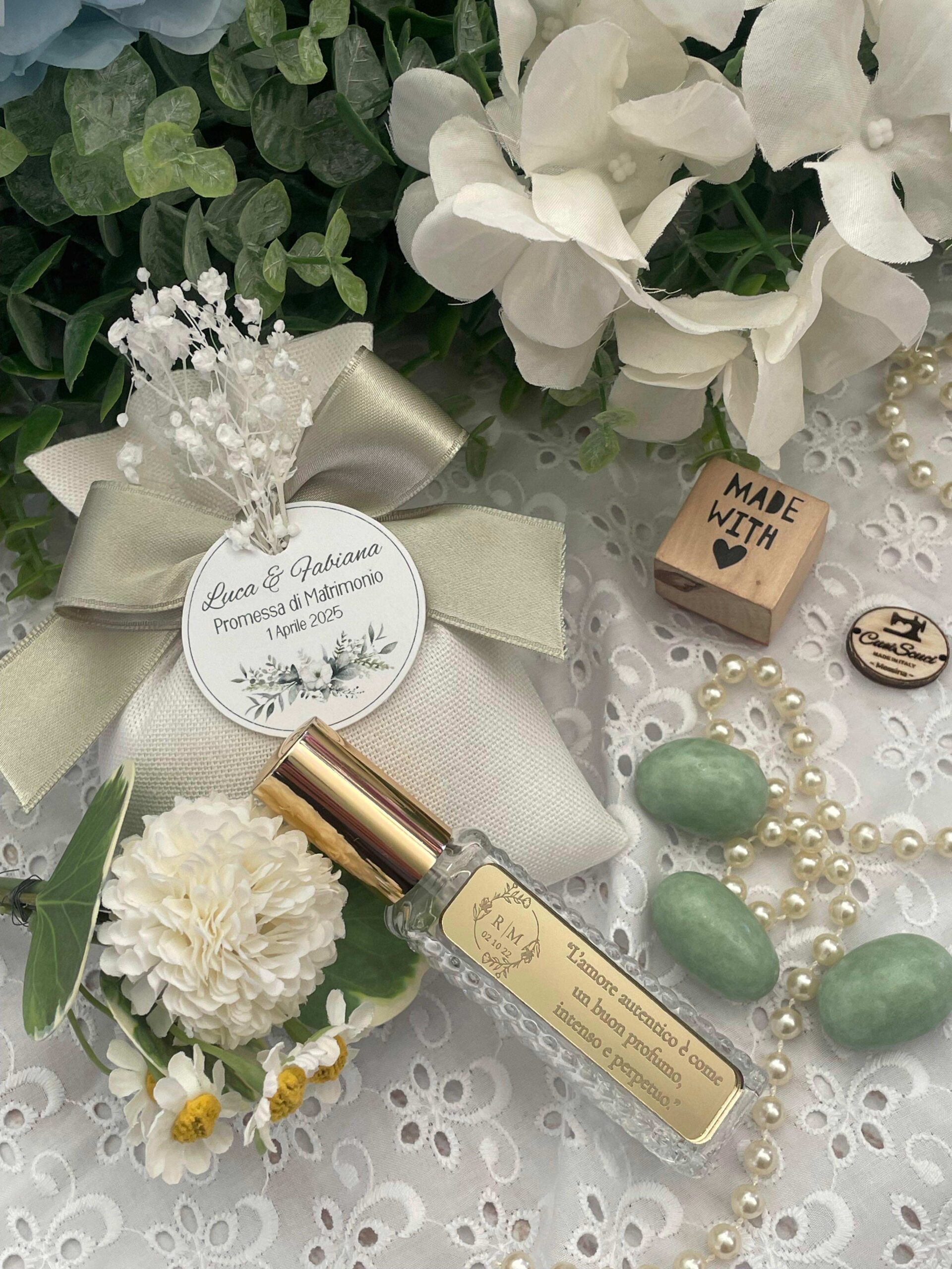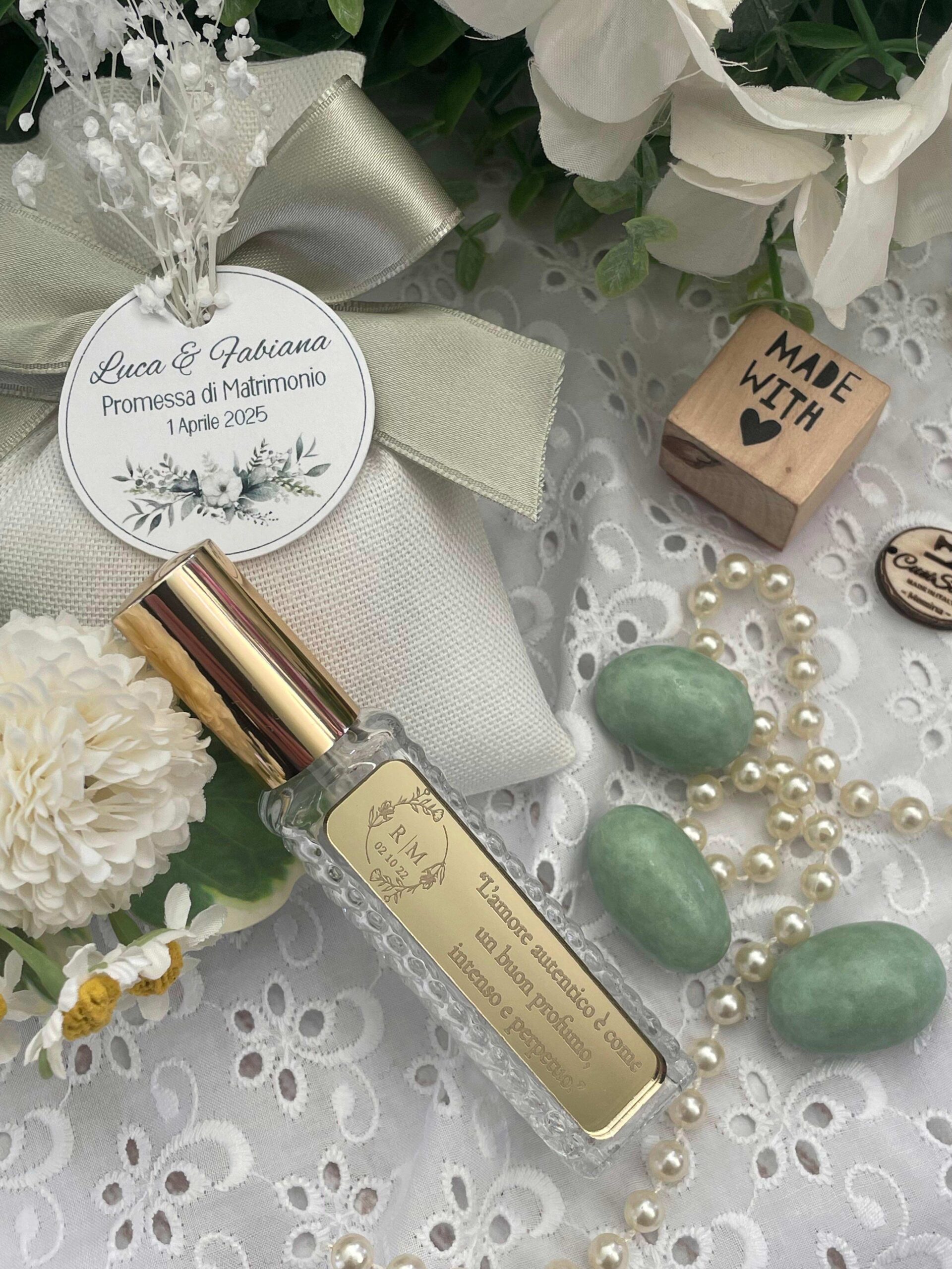 Un’idea raffinata e profumata, pensata per celebrare i momenti più belli della vita: promesse di matrimonio, anniversari, bomboniere o piccoli regali dal grande significato.