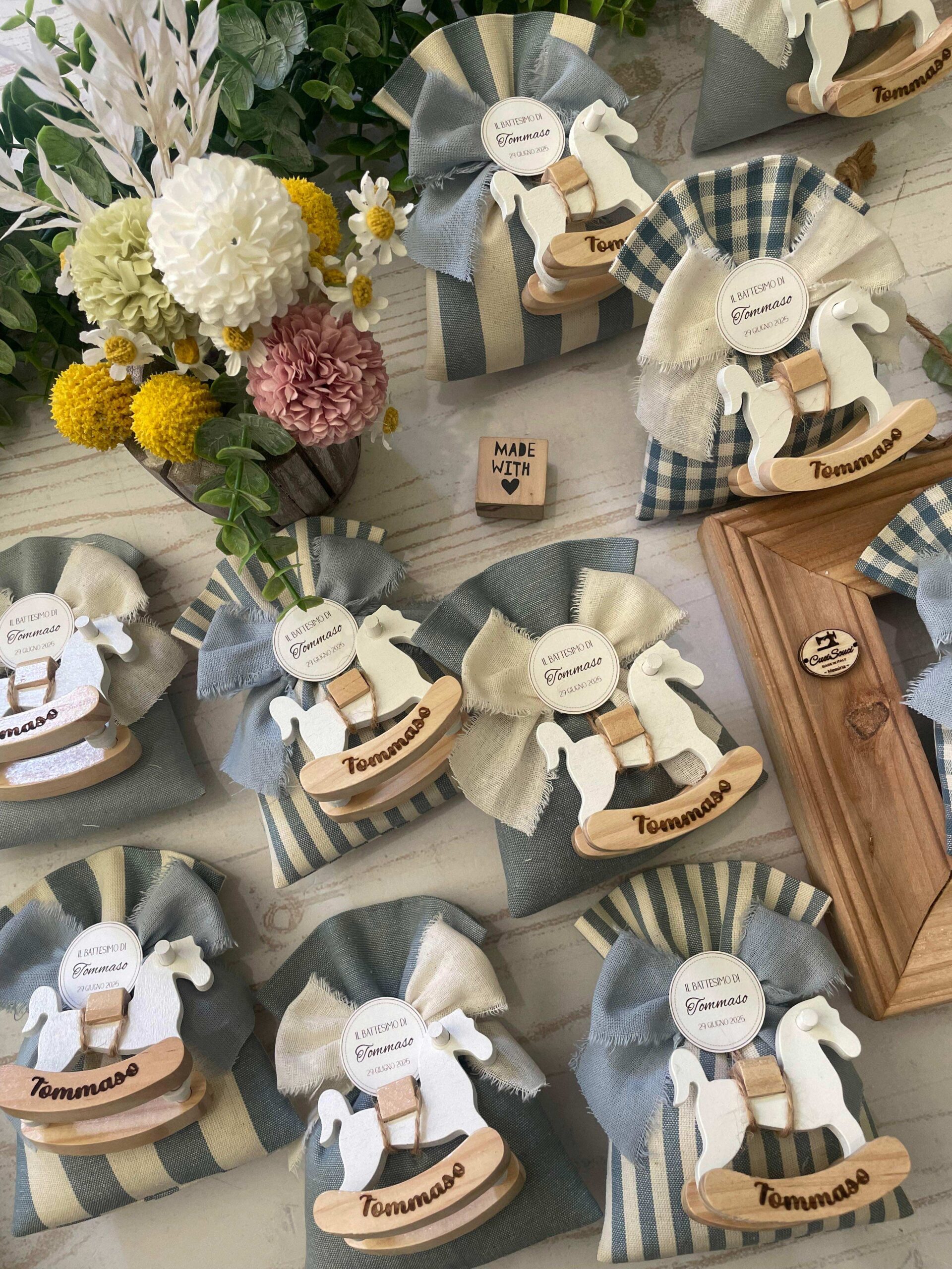 Sacchetto Sartoriale Colore a Scelta con Cavallino in Legno Personalizzato