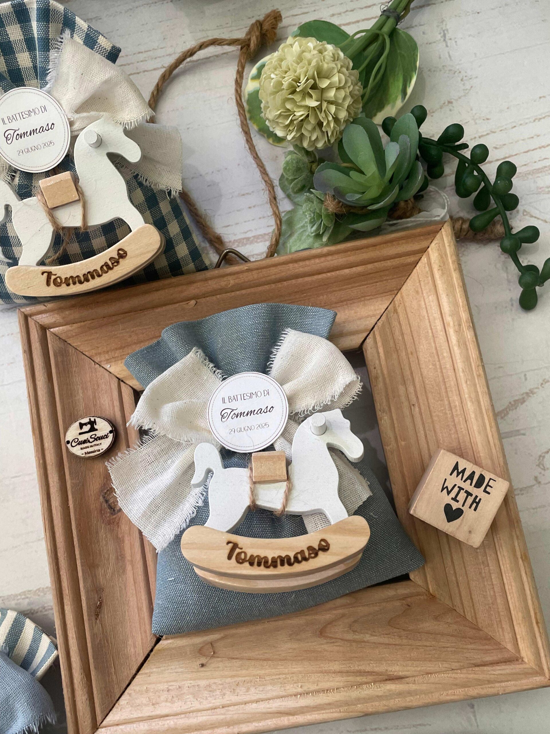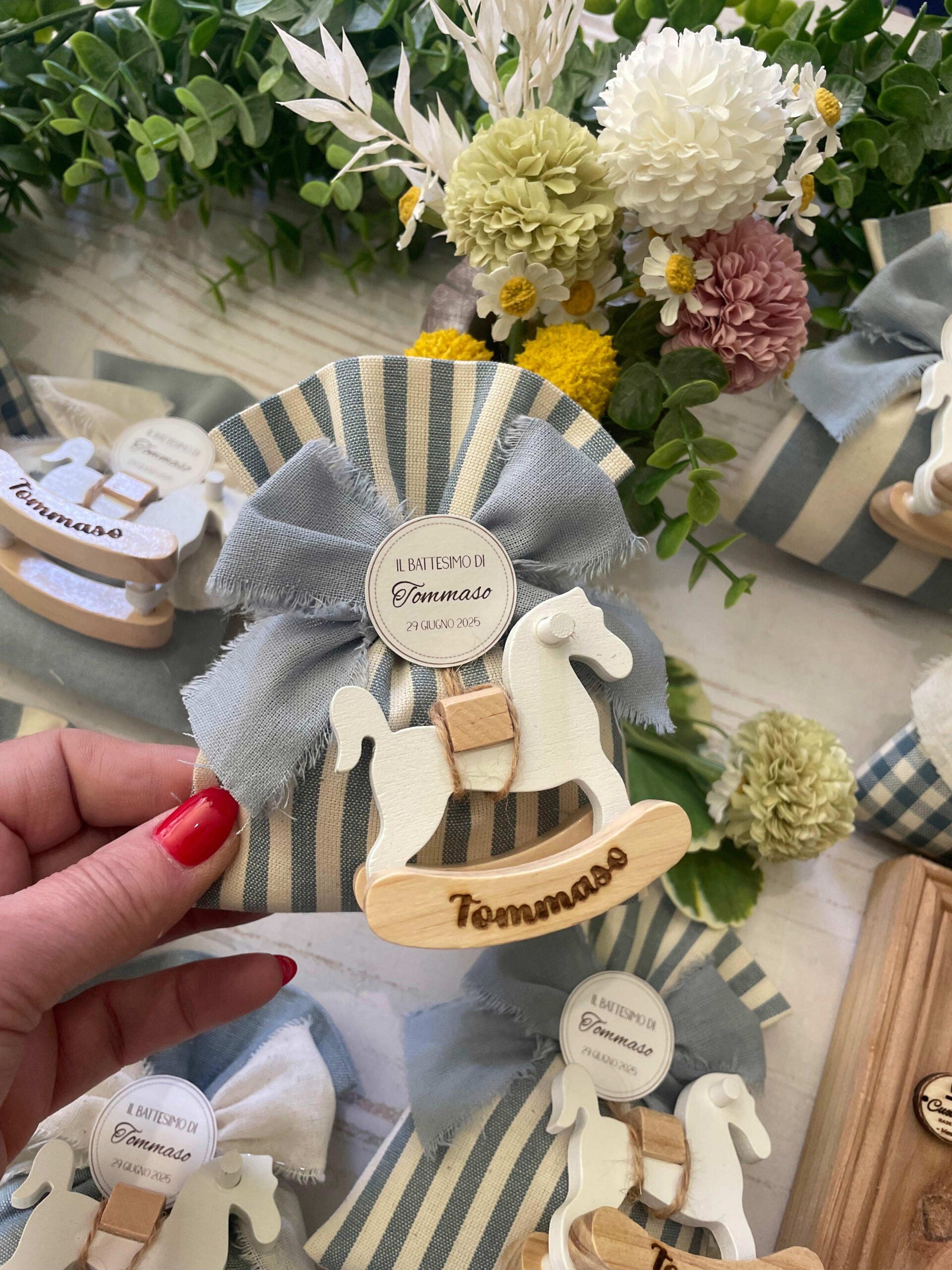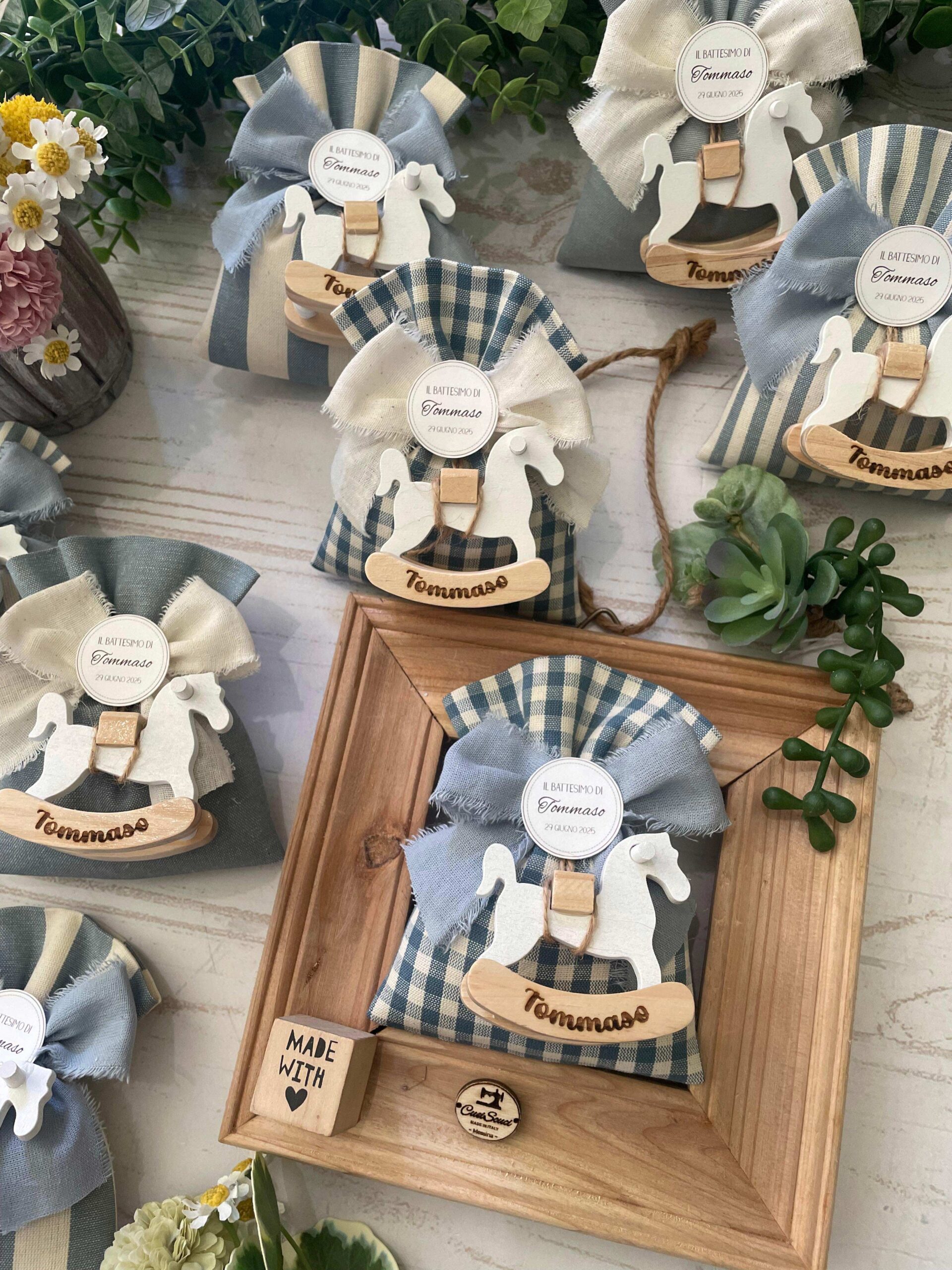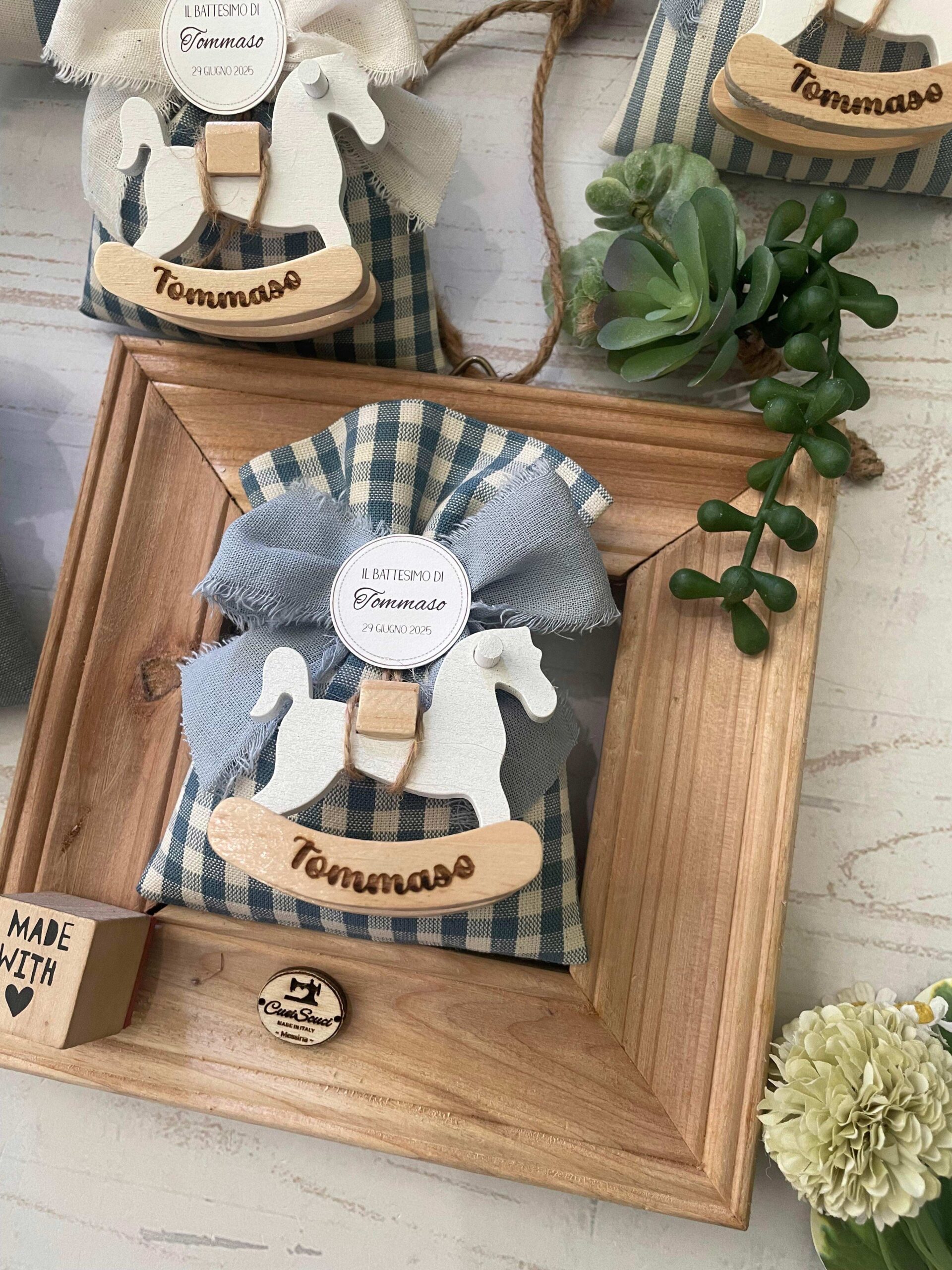 Recensisci per primo “Sacchetto Sartoriale Colore a Scelta con Cavallino in Legno Personalizzato”