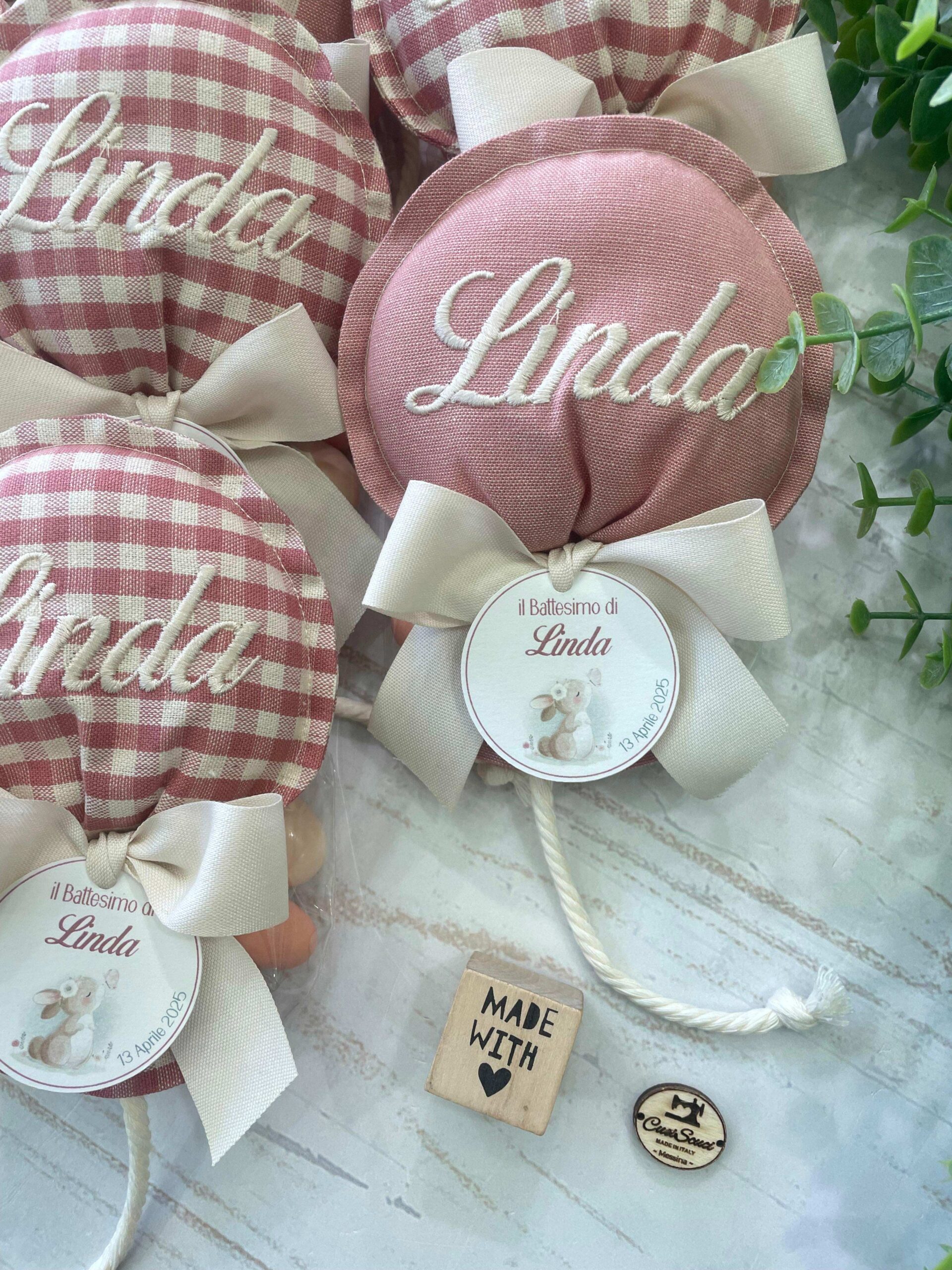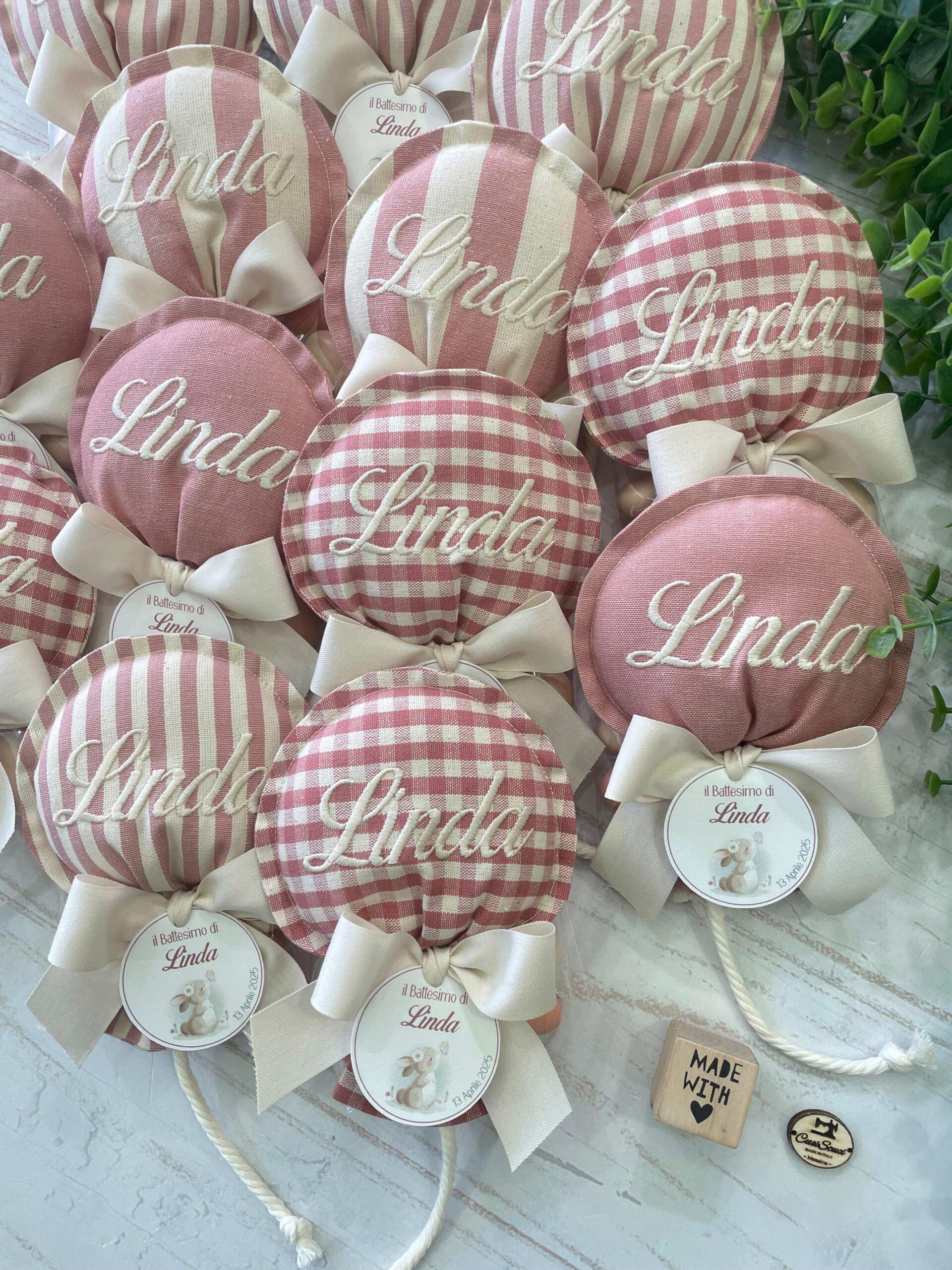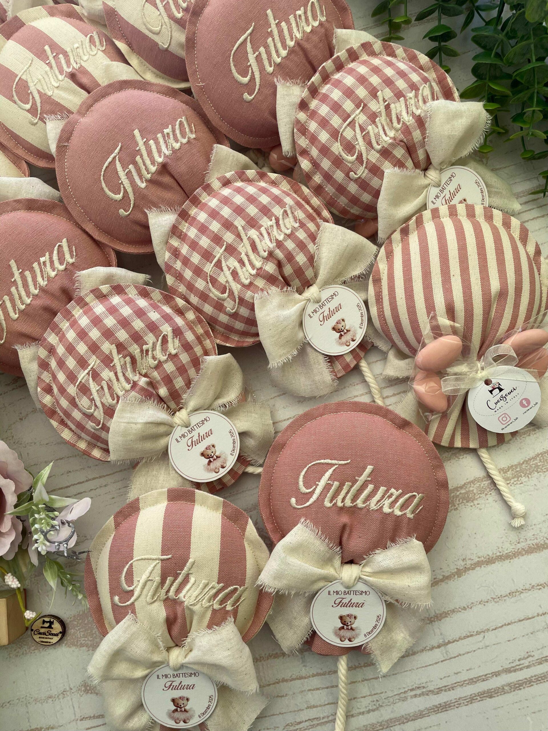 Al centro del palloncino è ricamato il nome della bimba.