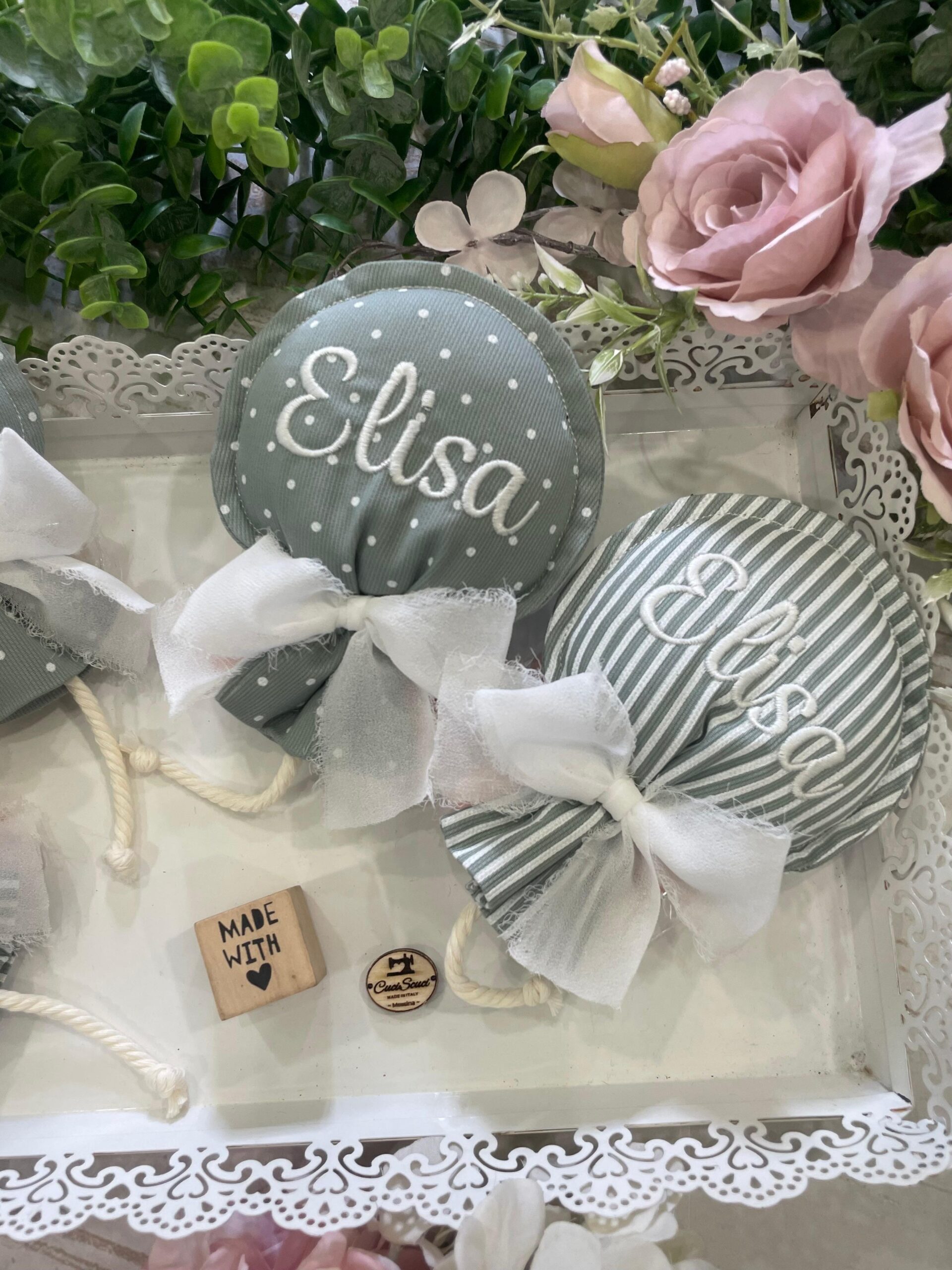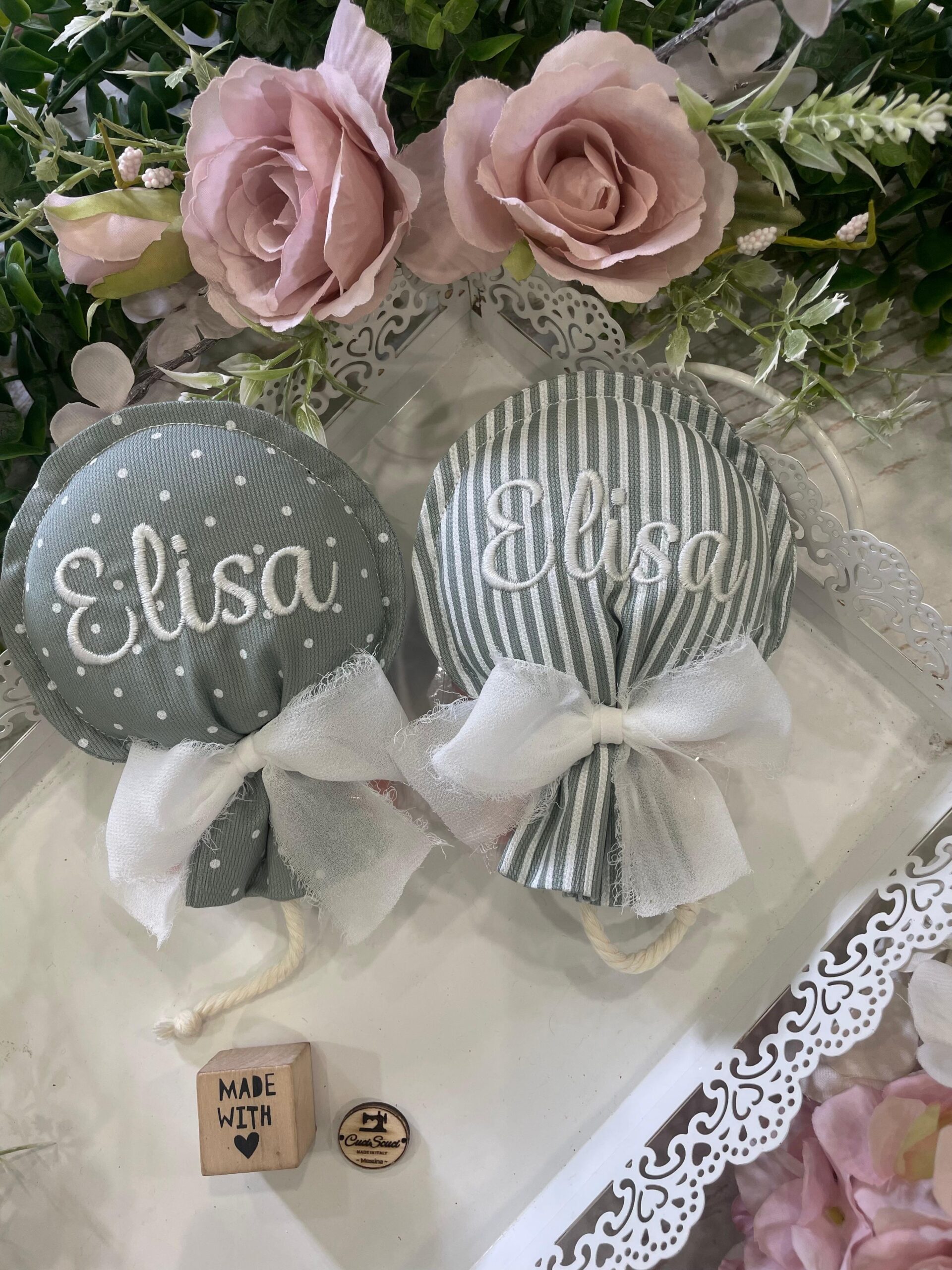 Al centro del palloncino è ricamato il nome del bimbo/a (nome personalizzabile)