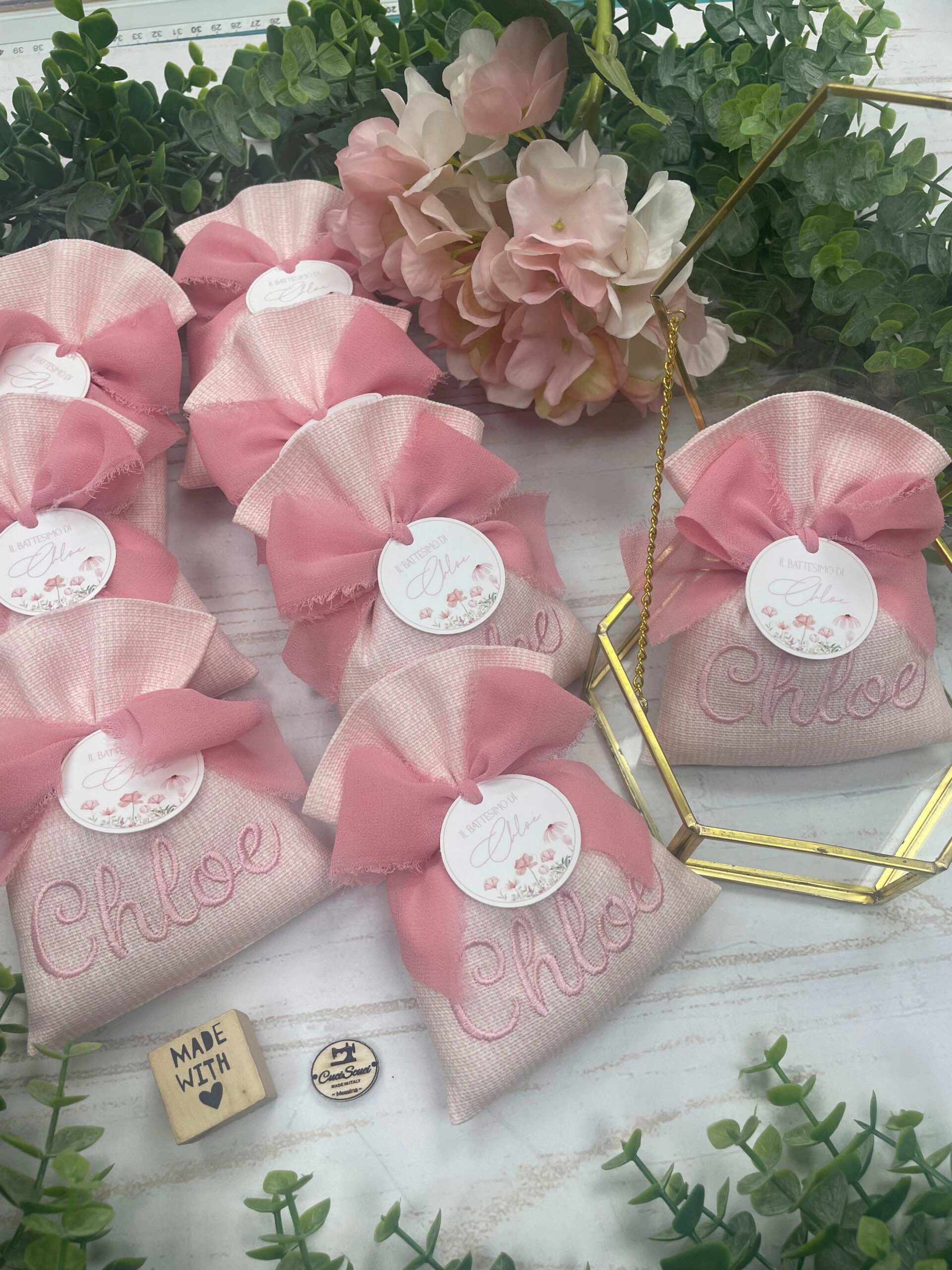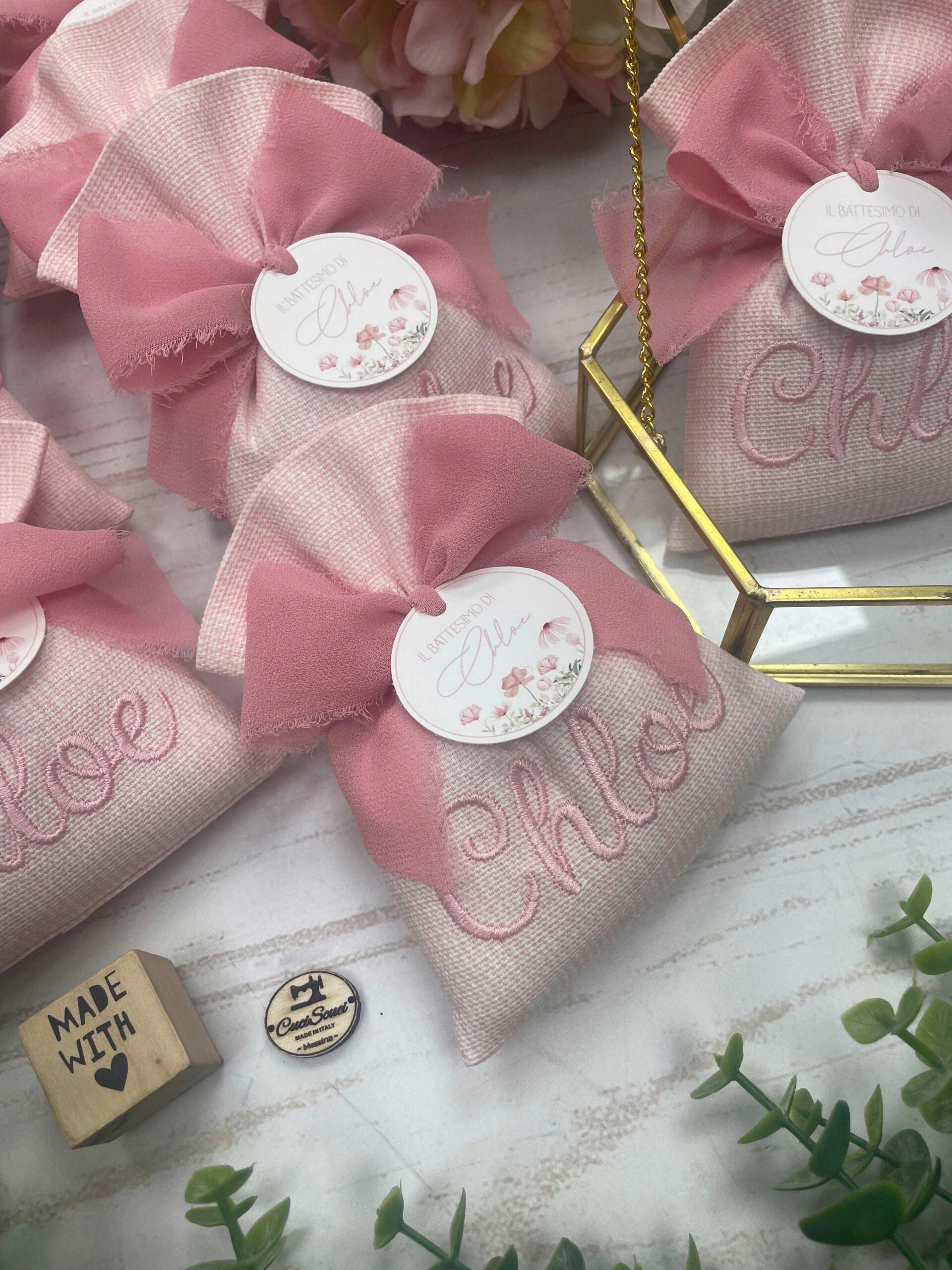 Sacchetto Sartoriale Rosa con Ricamo Iniziale