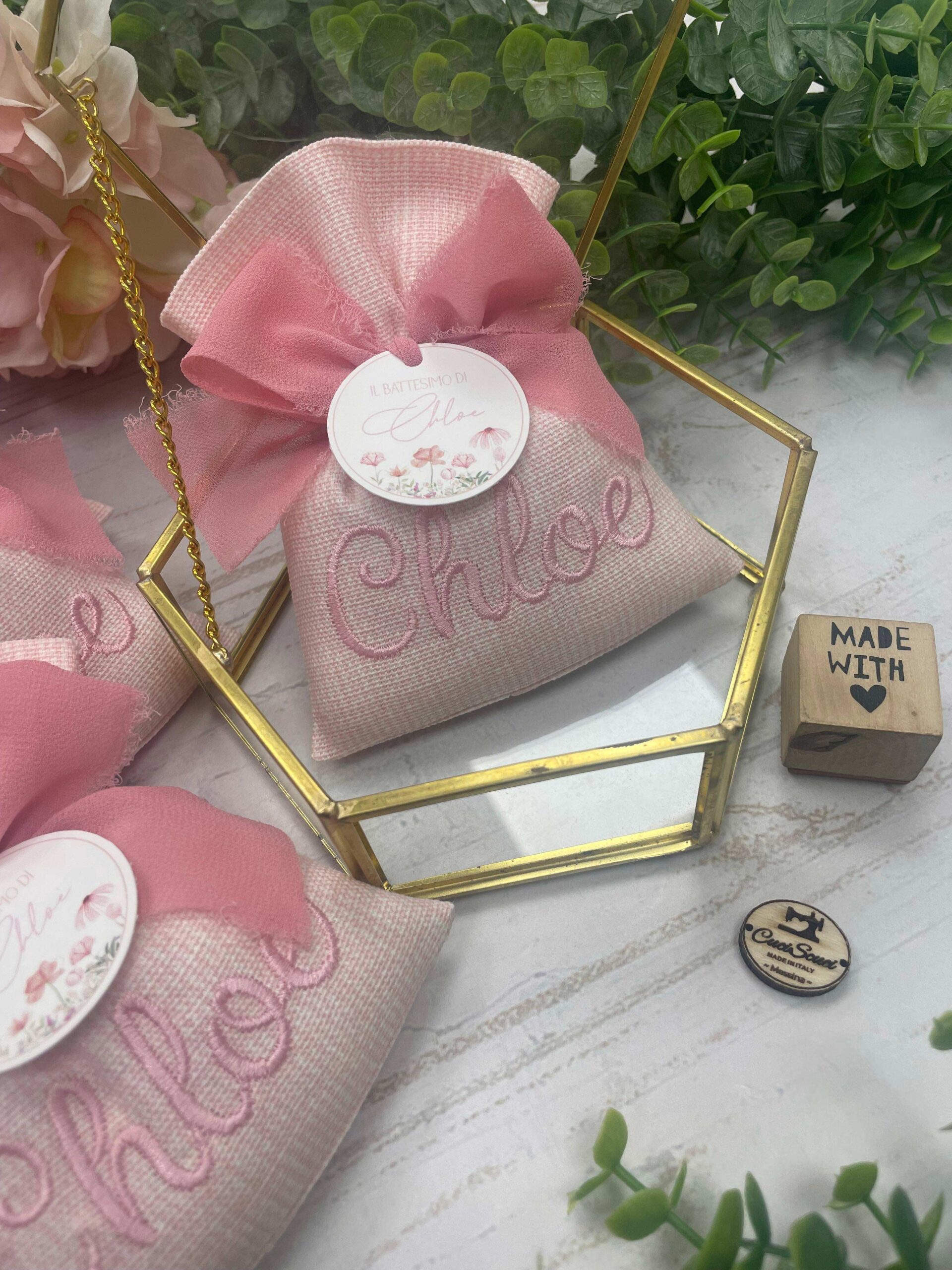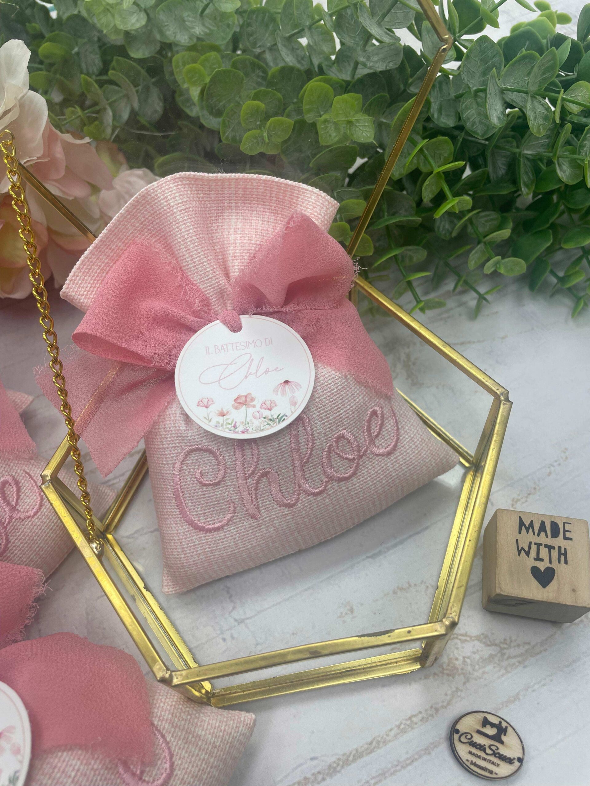 Recensisci per primo “Sacchetto Sartoriale Rosa con Ricamo Iniziale”