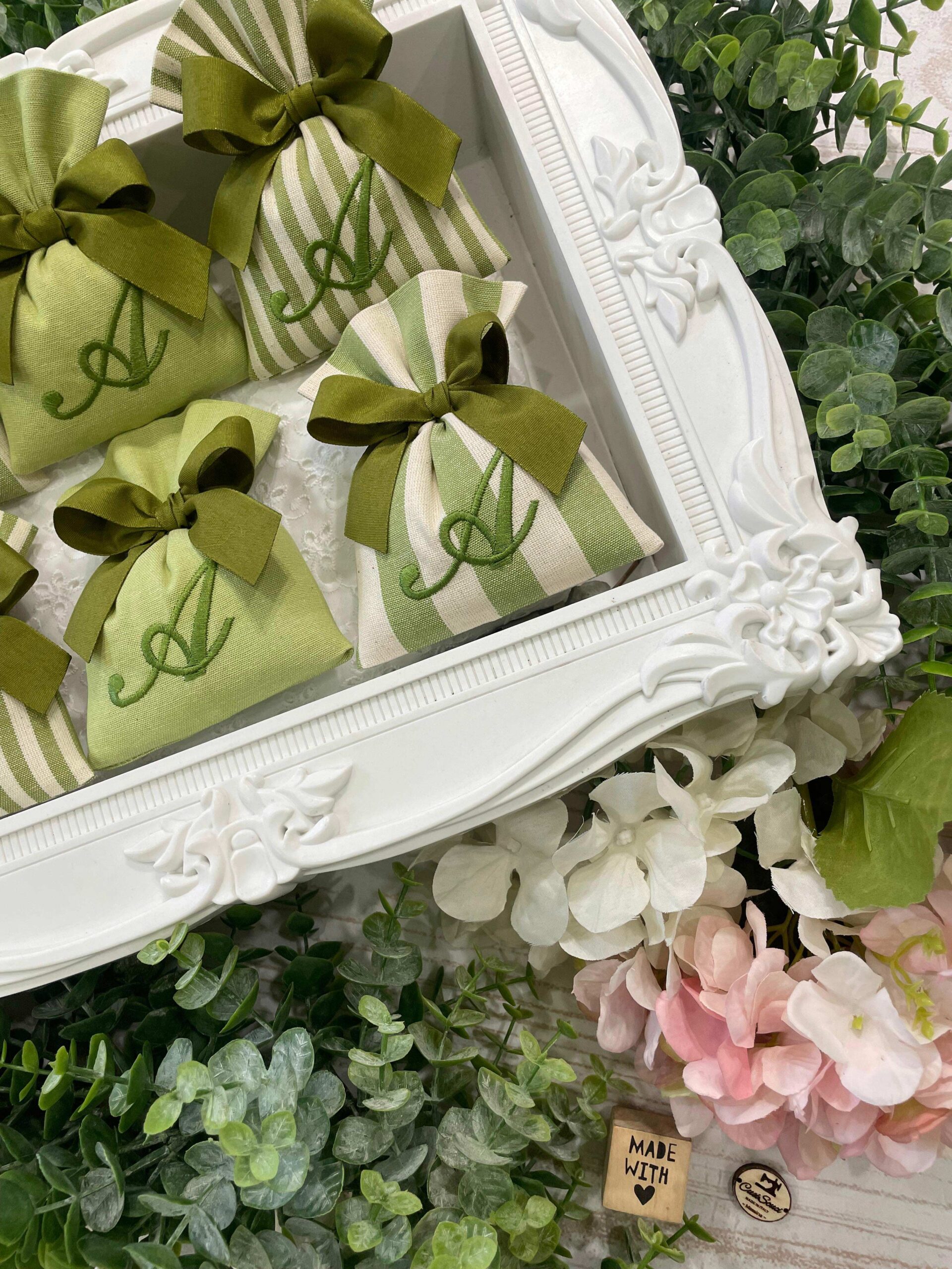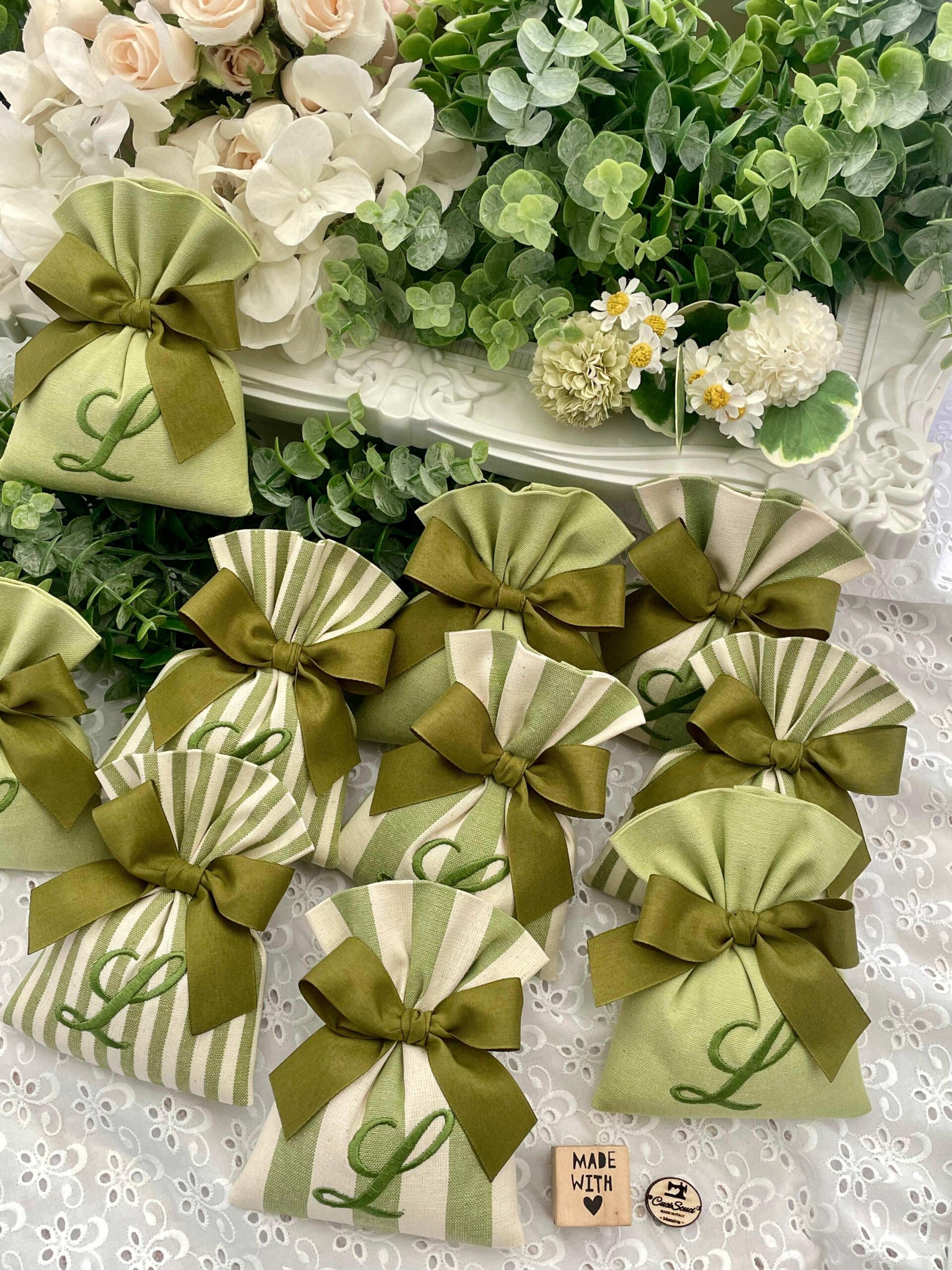 Sacchetto Sartoriale Verde Kiwi e Panna con Ricamo Iniziale