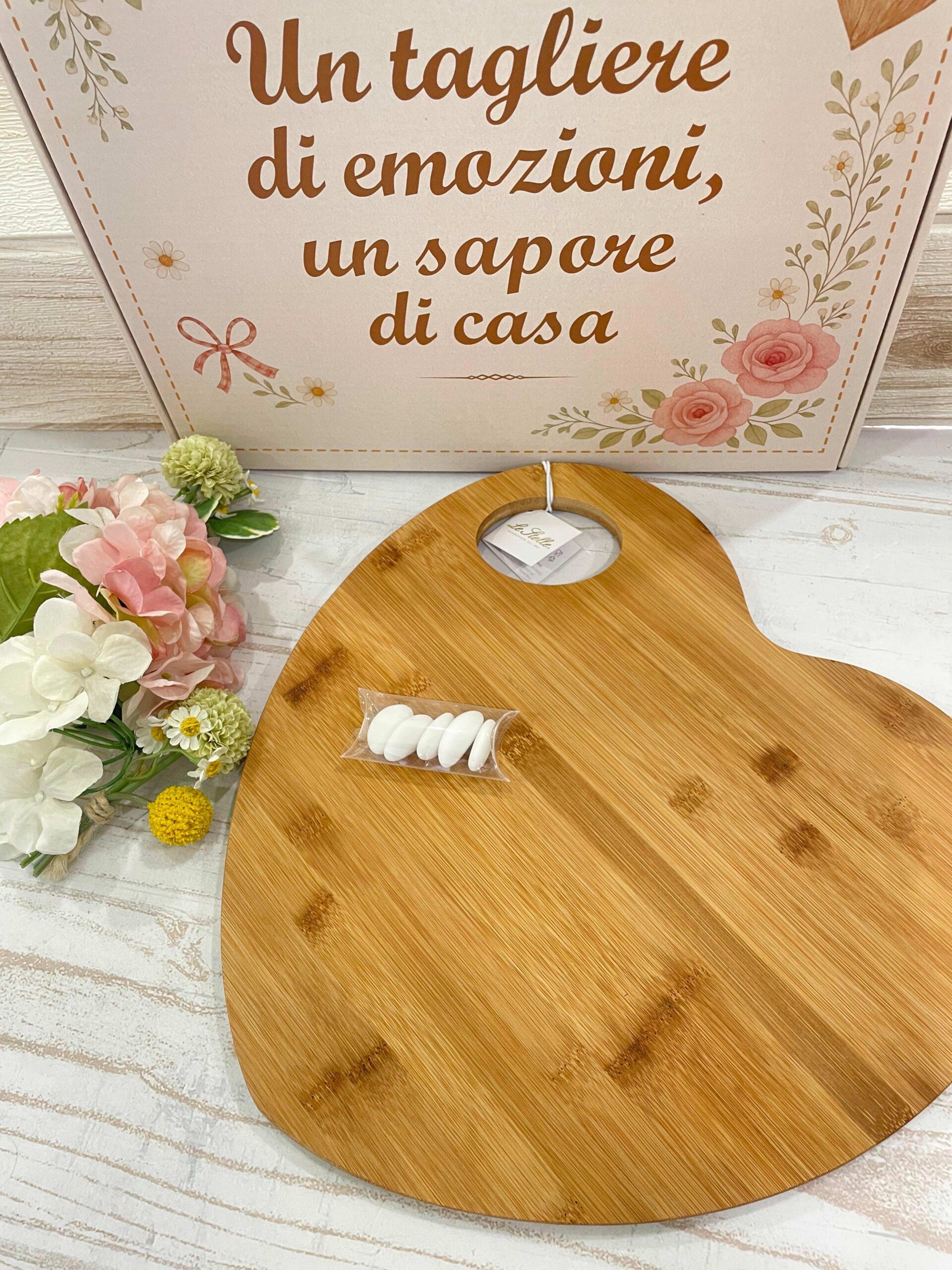 Un complemento pensato per accompagnare nel tempo la quotidianità e i momenti di condivisione, capace di conservare il ricordo di una giornata speciale attraverso la naturale eleganza del legno e la dolcezza della sua forma.
